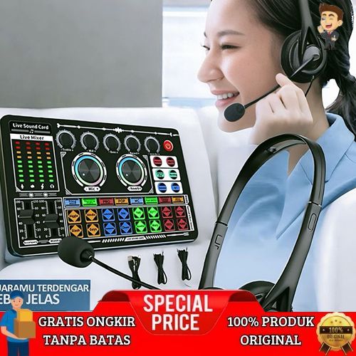 [Mall] TANPA DP Paket Sound Card F999-SY490 Set Peralatan Live Streaming dan Karaoke Plus Headphone