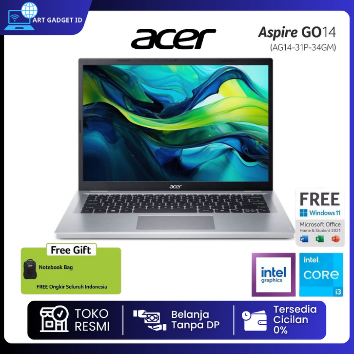 LAPTOP ACER ASPIRE GO AG14-31P-34GM INTEL CORE I3-N305 INTEL UHD GRAPHICS RAM 8GB STORAGE 512GB SSD MURAH ORIIGNAL