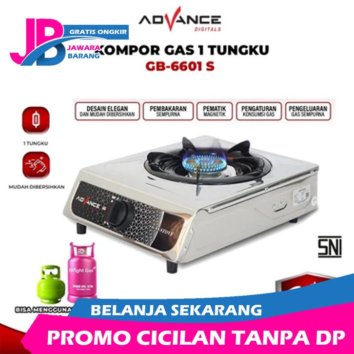 FREE ONGKIR Kompor Gas Advance 1 Tungku GB6601S Body Full Stainless Steel kompor Api Biru