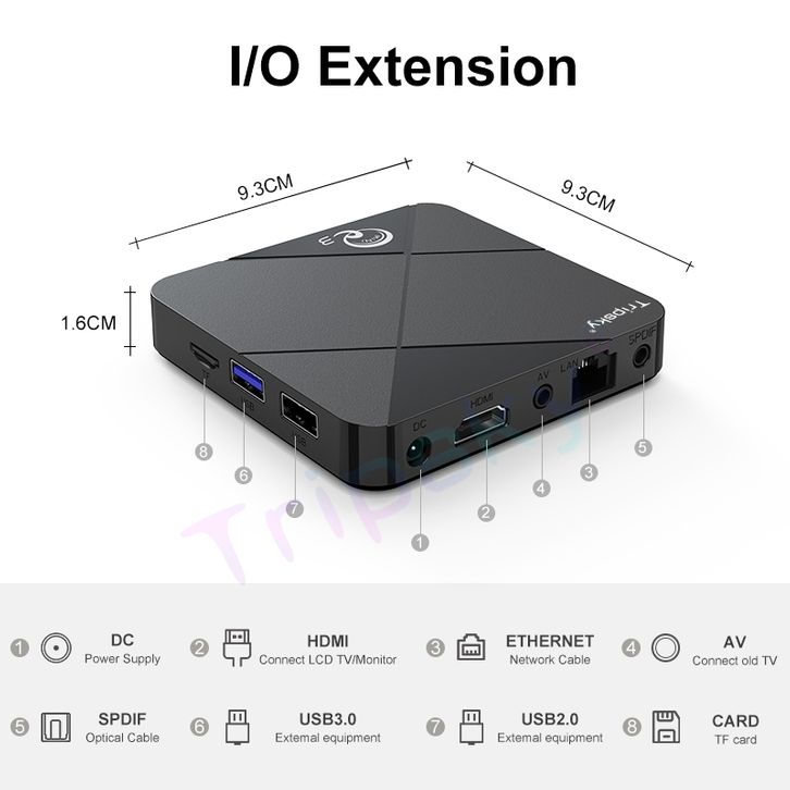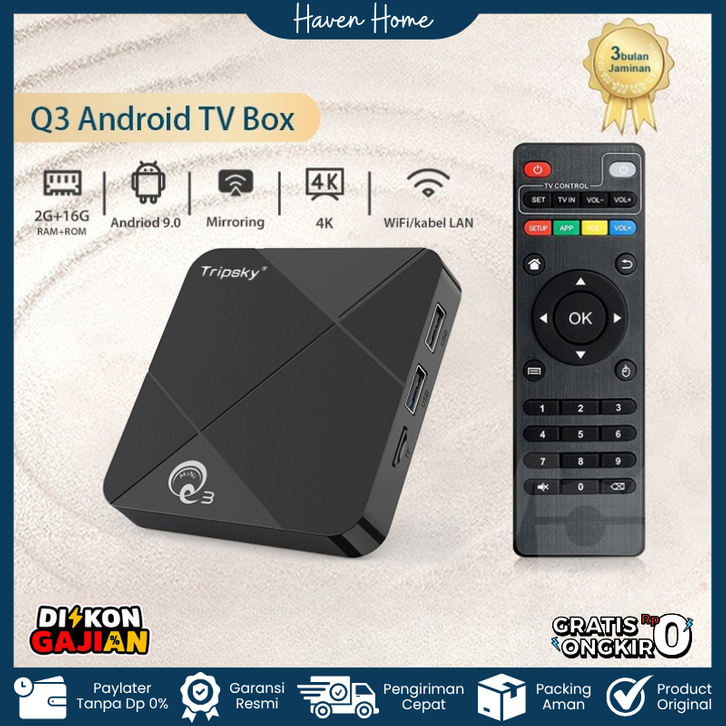 SET TOP BOX TRIPSKY ANDROID TV BOX MINI Q3 RAM 2GB ROM 16GB ANDROID 9 WIFI 2.4G 4K ULTRA HD SMART TV BOX UNLOCK TV BOX