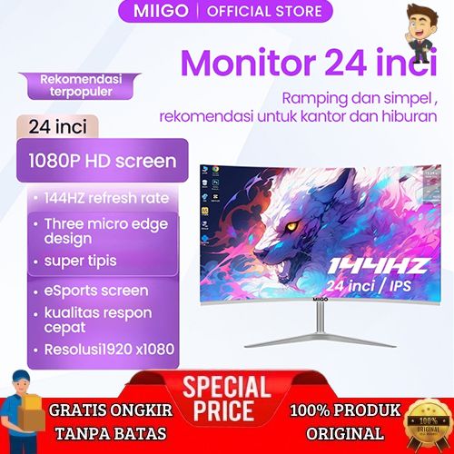 [Mall] MIIGO- Monitor, Monitor Game Profesional, Monitor 24 Inci, Tampilan Lengkung, Panel IPS, (144HZ/165HZ) Kecepatan