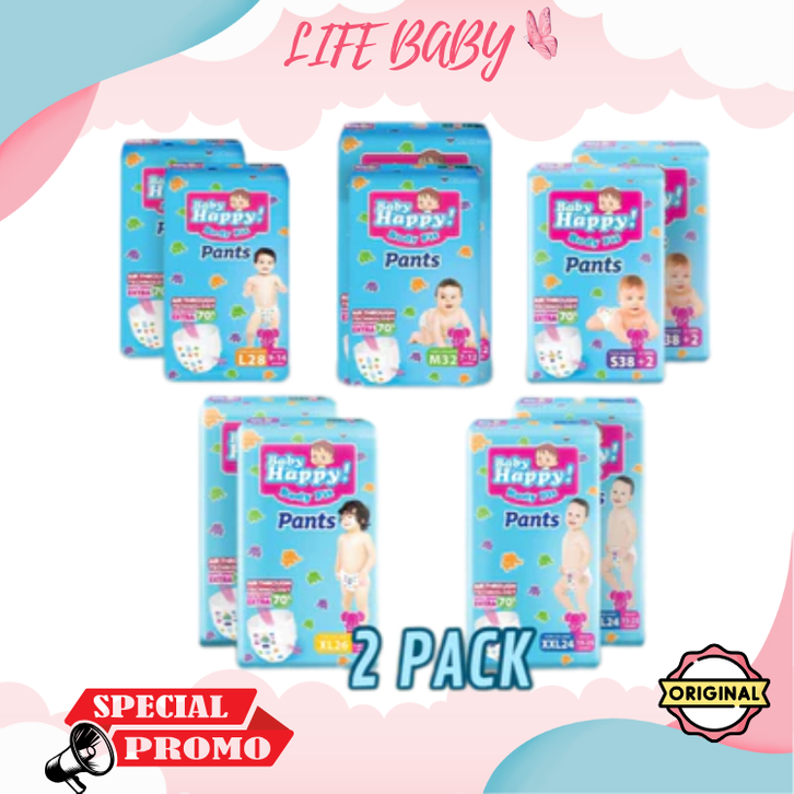 BABY HAPPY FIT PANTS PAKET 2 BALL S40 M32 L28 XL26 XXL24 POPOK DIAPERS CELANA BAYI ANAK MENYERAP CEPAT MURAH TANPA DP