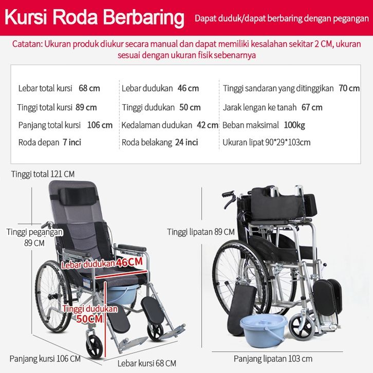 [Mall] KURSI RODA LANSIA SAURON 24 INCI KURSI RODA LIPAT PORTABLE KURSI RODA TRAVELLING KURSI RODA MEDIS KURSI HIDROLIK