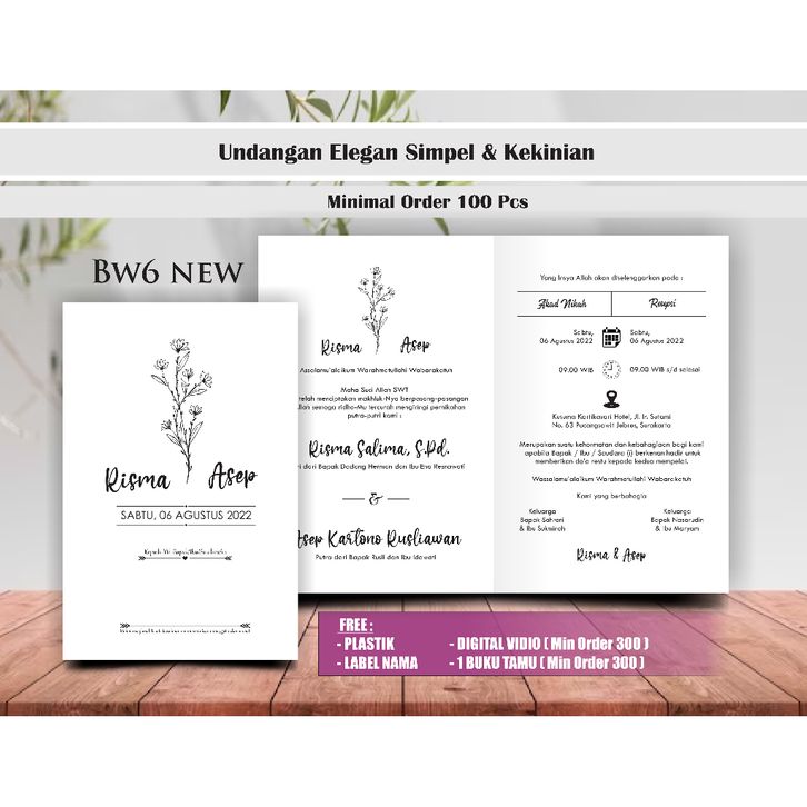 200 PCS Undangan Pernikahan murah Bahan BC 160