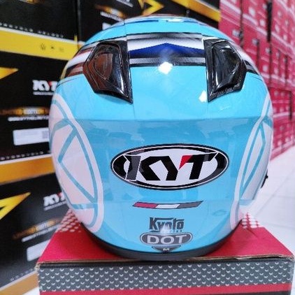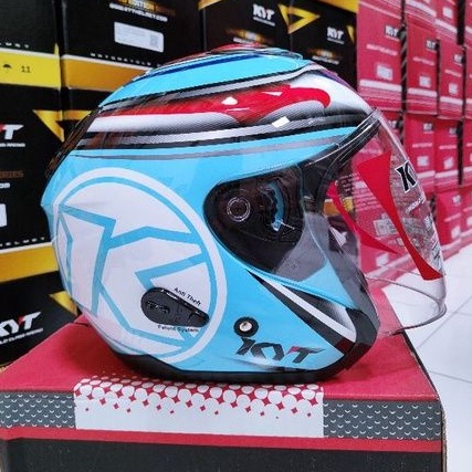 HELM KYT KYOTO R #3 AQUA BLUE/RED FLUO/WHITE HELEM SIZE 57 58 M 59 60 L 61 62 XL ORIGINAL GRATIS ONGKIR