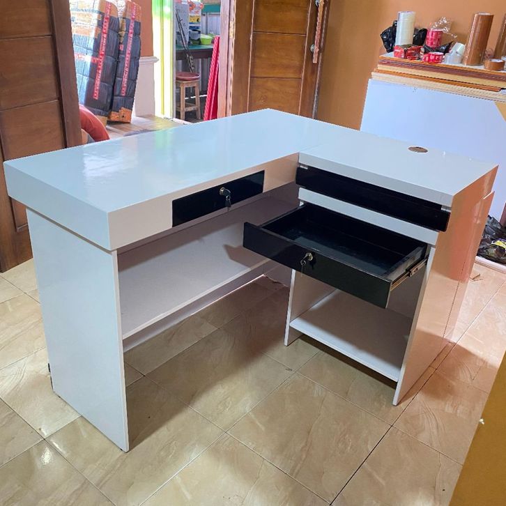 Meja Kasir L serbaguna buat kantor, toko, minimarket dll