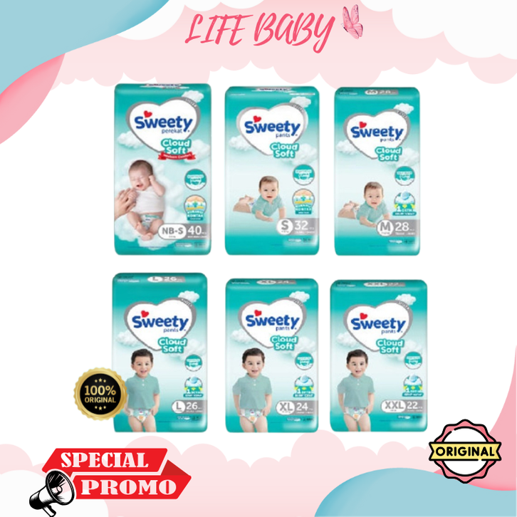 POPOK SWEETY SILVER PANTS PAKET 4 BALL BABY DIAPERS CLOUD SOFT CELANA PEREKAT S36 M32 NB40 L28 XL24 XXL22 TANPA DP MURAH