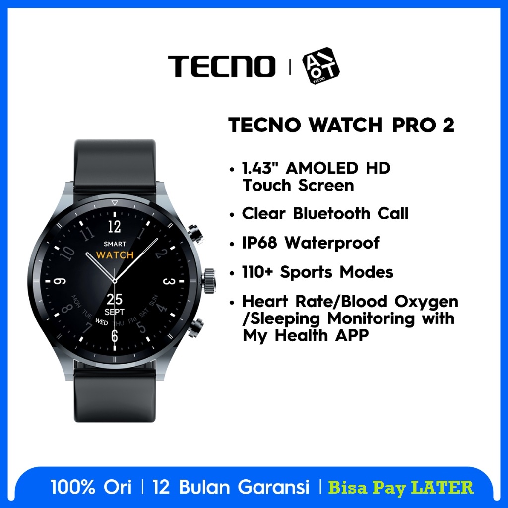 [Star] Smartwatch TECNO Watch Pro 2 AMOLED Tahan Air ORIGINAL