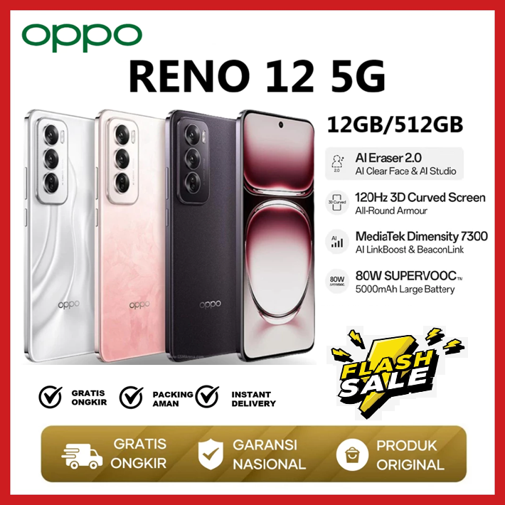 HP OPPO RENO 12 5G RAM 12 + 256GB NFC Dimensity 7300-Energy ORIGINAL GARANSI RESMI