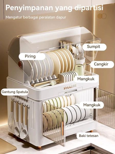 Rak piring Minimalis modern Tertutup serbaguna Kaca Keramik stainless aluminium Original Premium