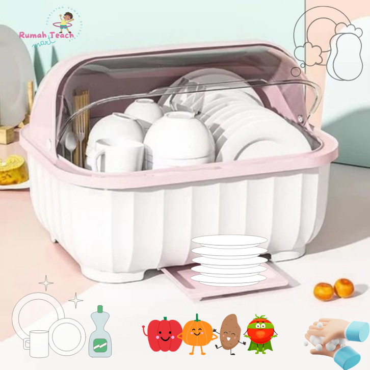 Rak Piring Minimalis Modern Tertutup -Tempat Penyimpanan Alat makan Mangkuk Sendok Sumpit Garpu Dengan Tirisan air C29
