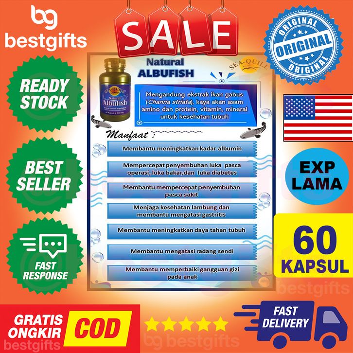 SEA-QUILL SEAQUILL SEA QUILL NATURAL ALBUFISH 500 MG MENGANDUNG EKSTRA IKAN GABUS 60 KAPAUL