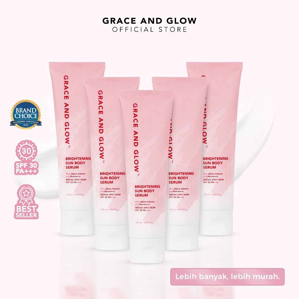 Grace and Glow BUNDLE HEMAT 5PCS SPF Sun Body Serum - Brightening Sun Lotion Body Serum SPF 30 PA+++ | Sunscreen | - Su