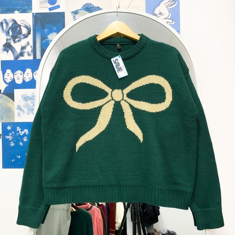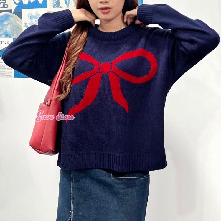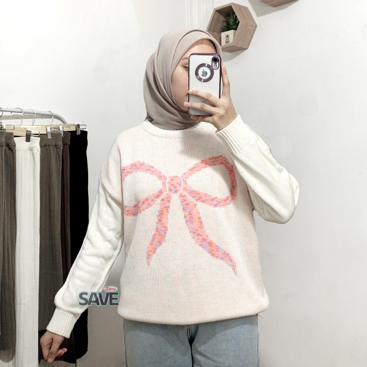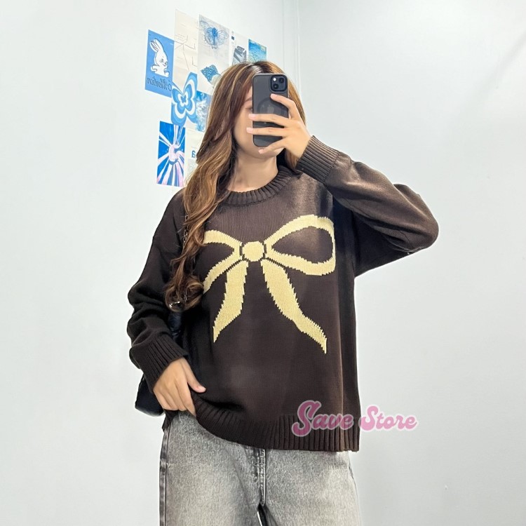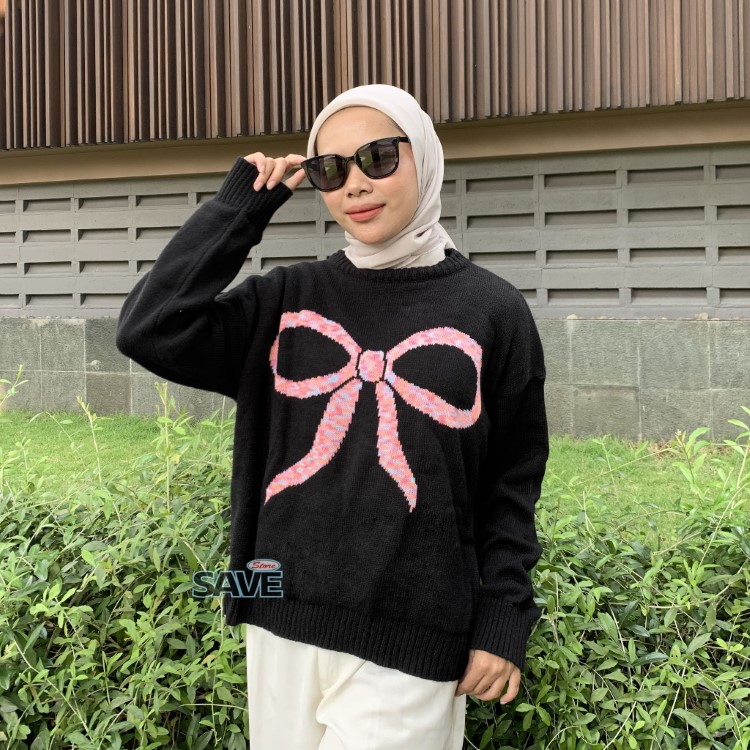 Sweater Rajut Wanita Motif Pita Sweater Oversize Knit Terbaru Kekinian