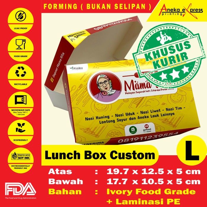 CUSTOM PRINT Paper Lunch Box Ukuran L | Qty 10000 | Khusus Kurir