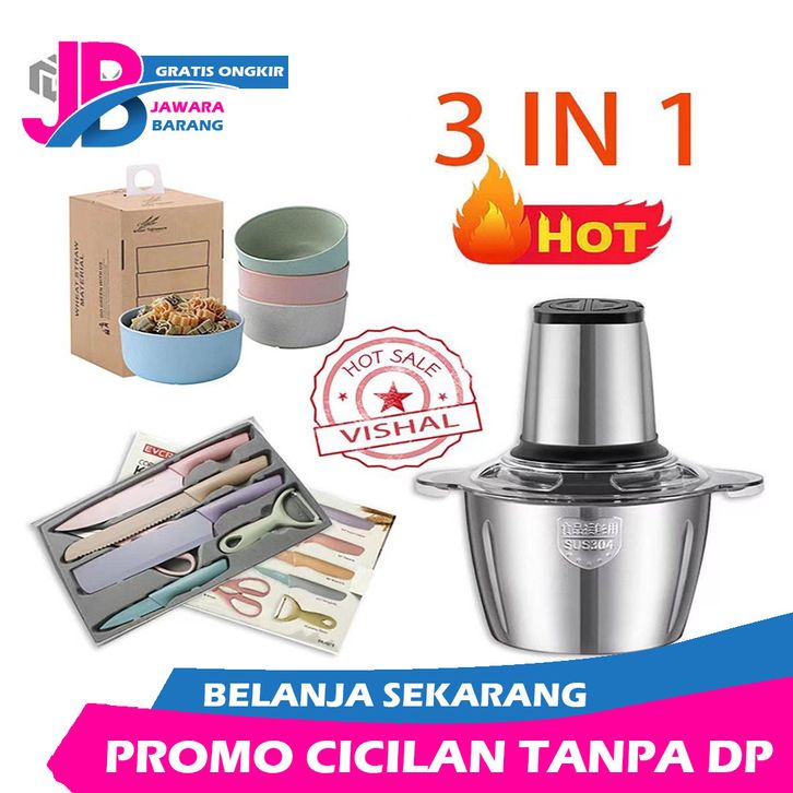 FREE ONGKIR VISHAL Combo 3IN1 Stainless Blender Daging Penggiling +1Set Pisau + 4Pcs Mangkuk Set