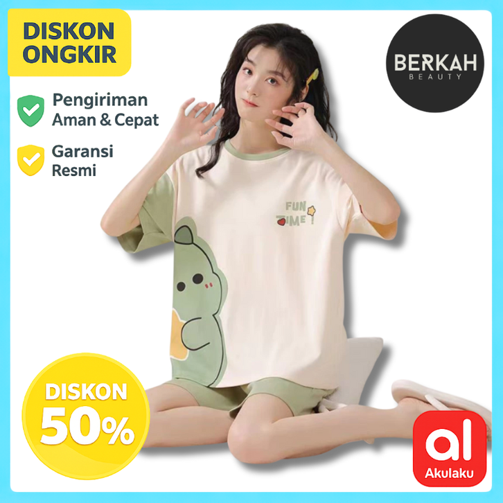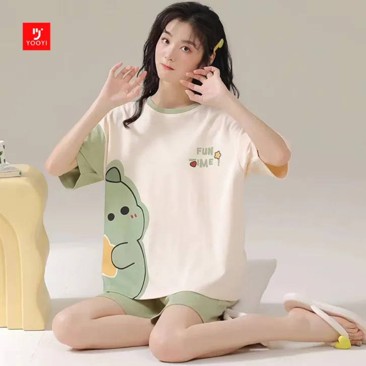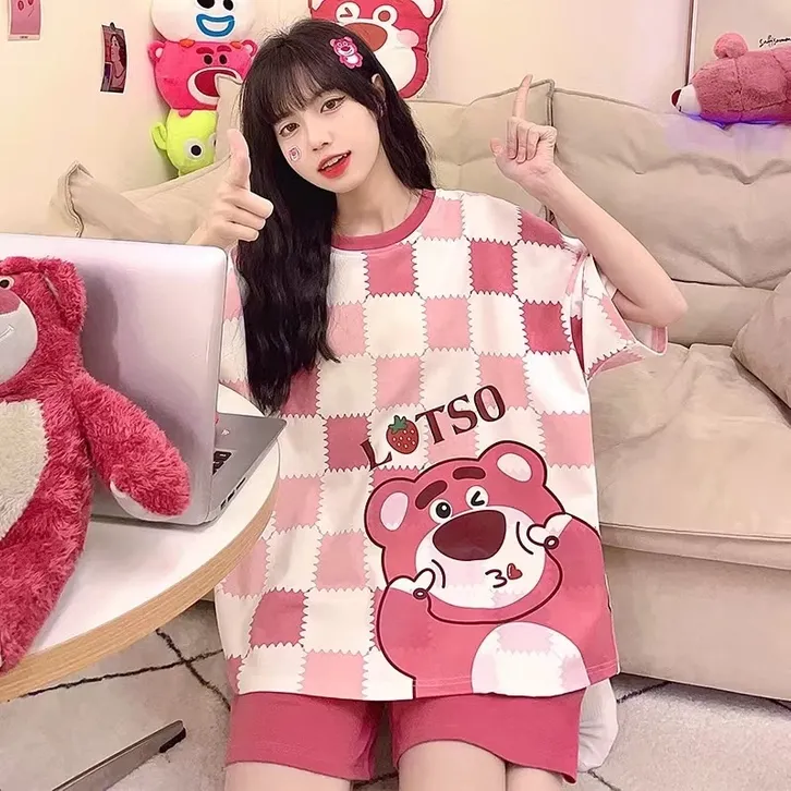 Baju Tidur Wanita Dewasa Setelan Yooyi Jumbo Piyama Korea Lengan Pendek Celana Pendek Motif Kartun Lucu Tidur Hotpants