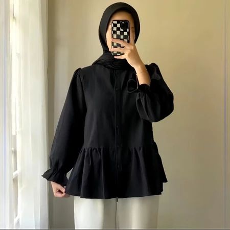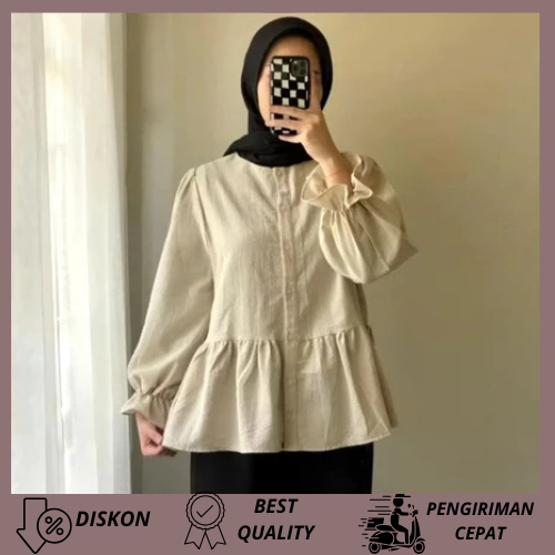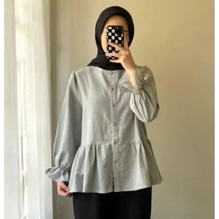 Lolly Ruffle Shirt Kemeja Oversize Linen Atasan Wanita Korean style kekinian viral blouse wanita elegan dan modis