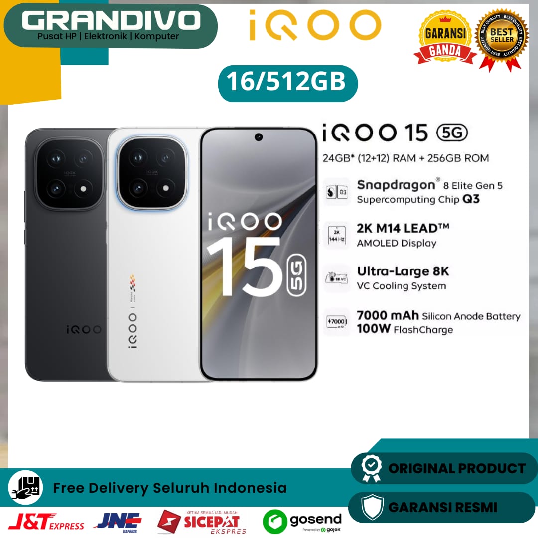 SEGEL HP IQOO 15 5G 6,85''AMOLED 144HZ Snapdragon 8 Gen 5 Ultra Q3 Chip 7000mAh 100W Garansi Resmi - Grandivo