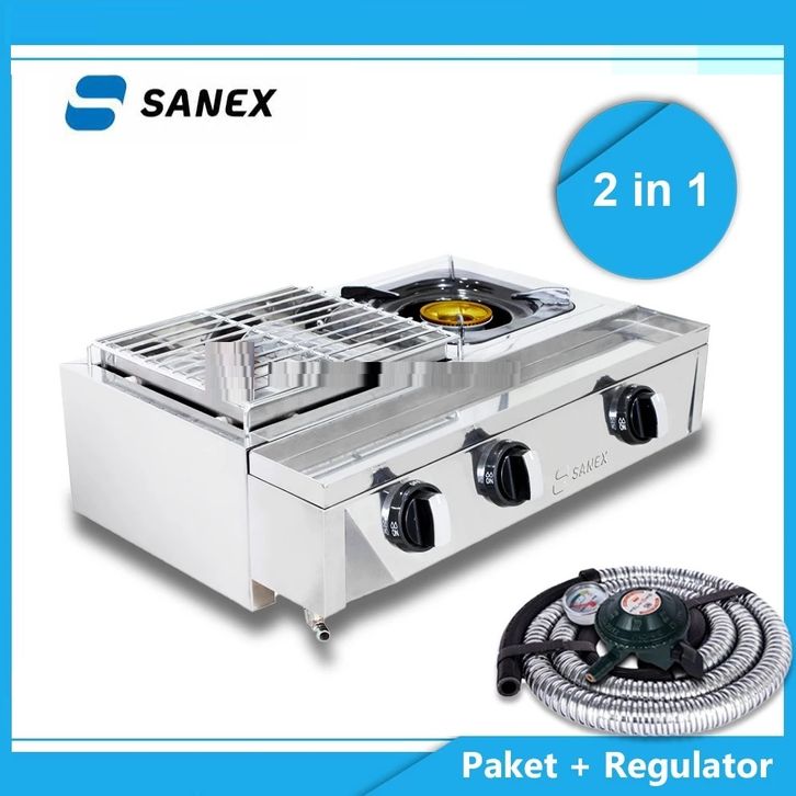 SANEX SN-KKP128 Kompor Gas + Panggang 2 IN 1 Kompor BBQ Kompor Sosis Kompor Bakaran