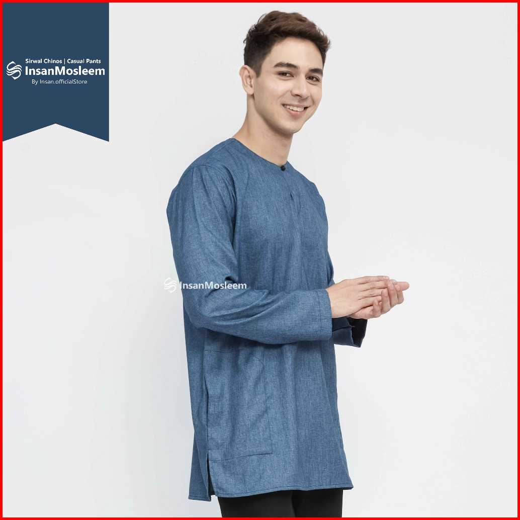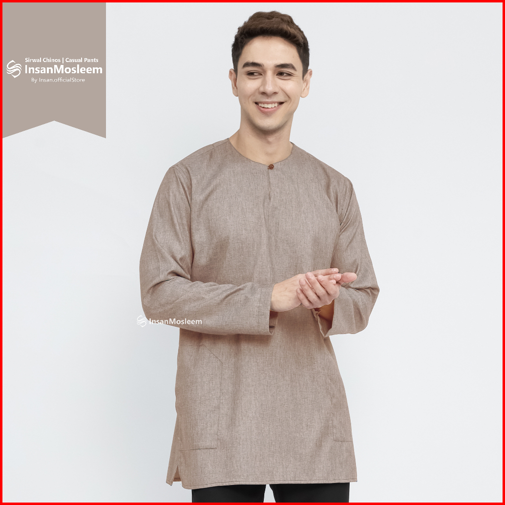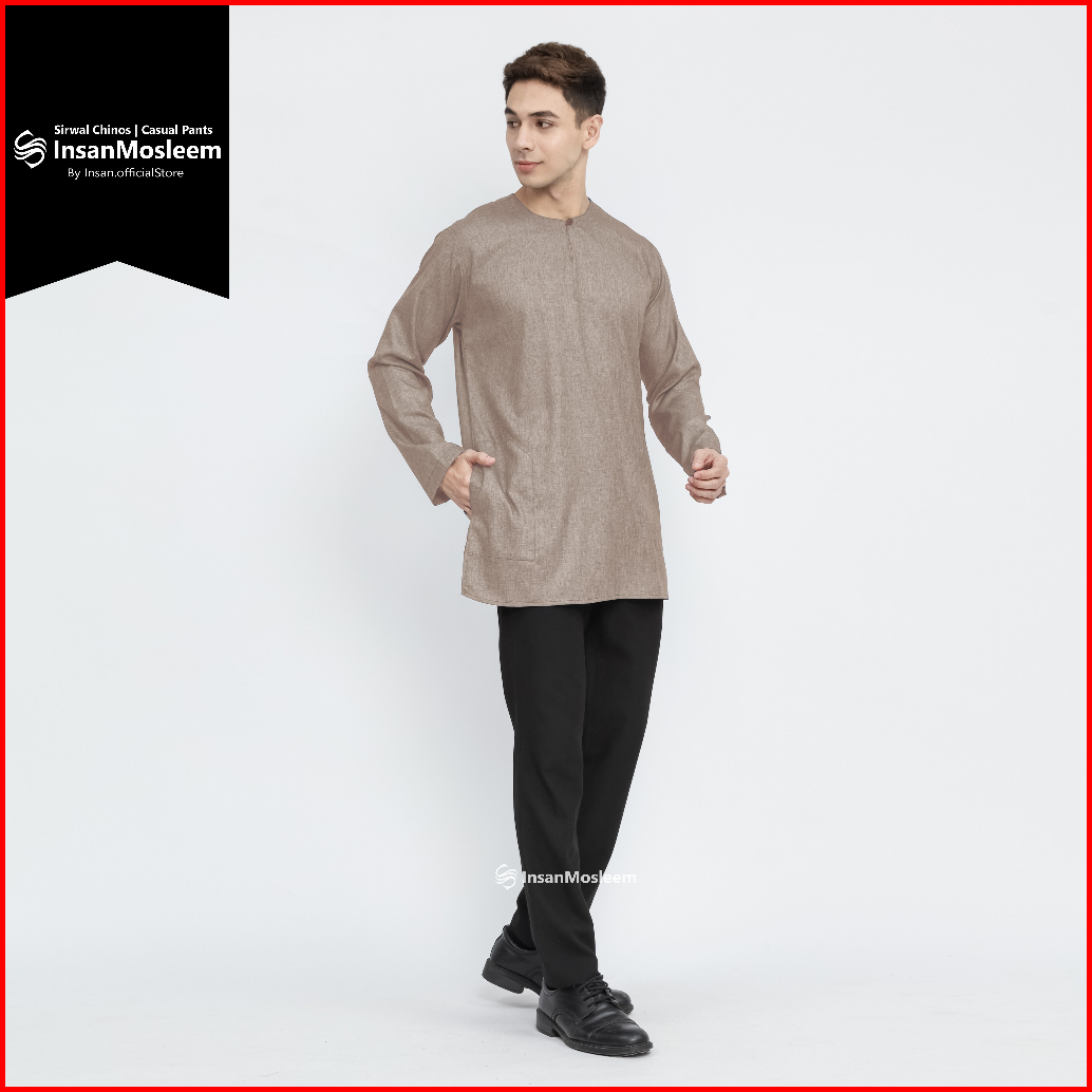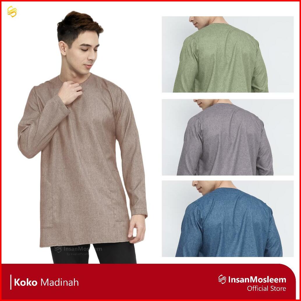 Insanmosleem - Baju Koko Pria Model Polos Lengan Panjang Klasik