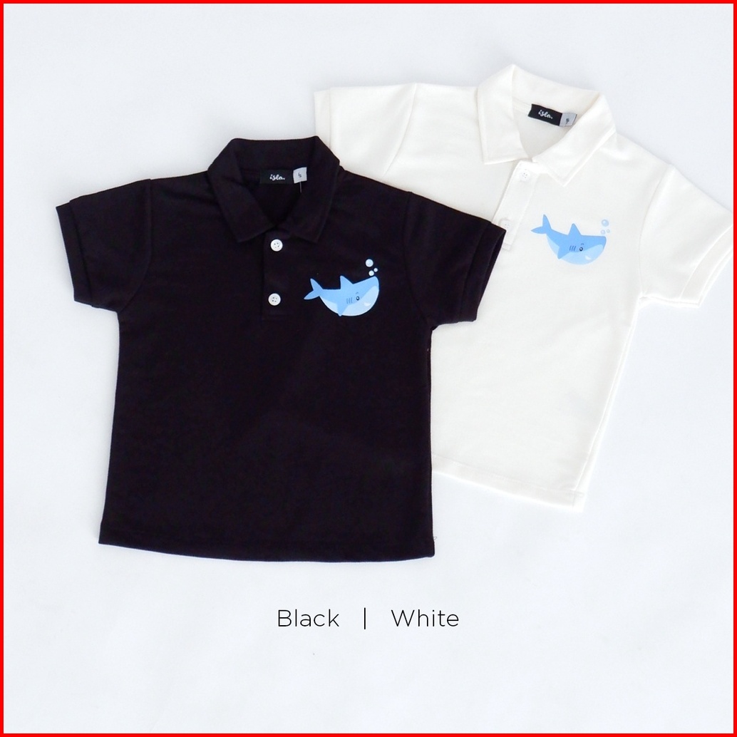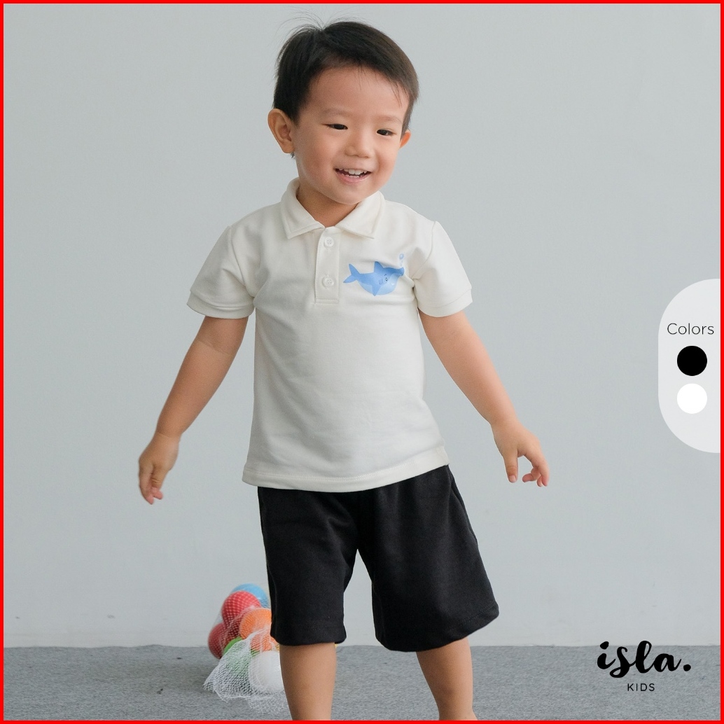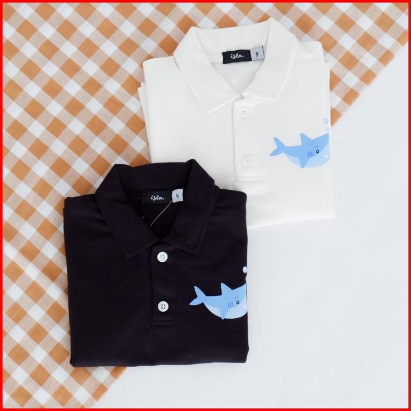 Isla Little Polo Shark T-shirt - Kaos Anak Sablon Hiu Lengan Pendek Unisex - Baby Terry Cotton