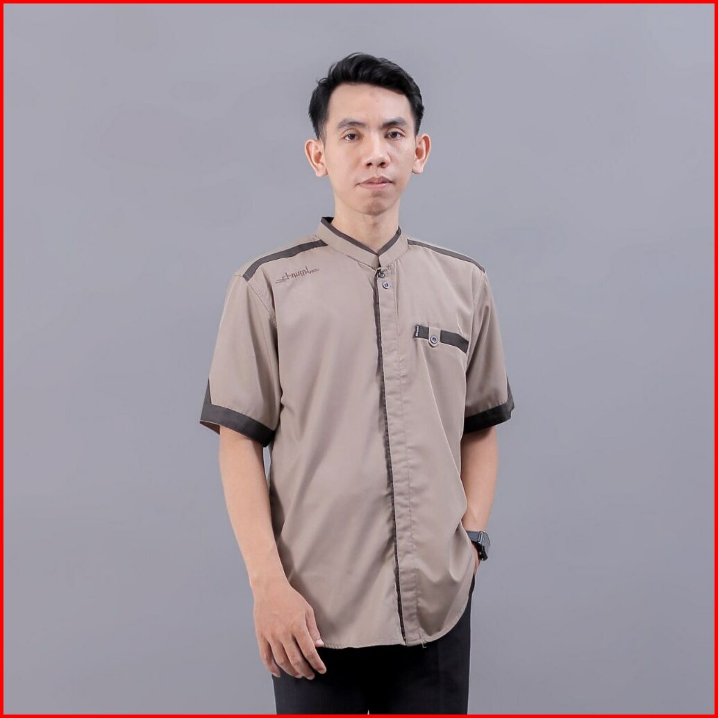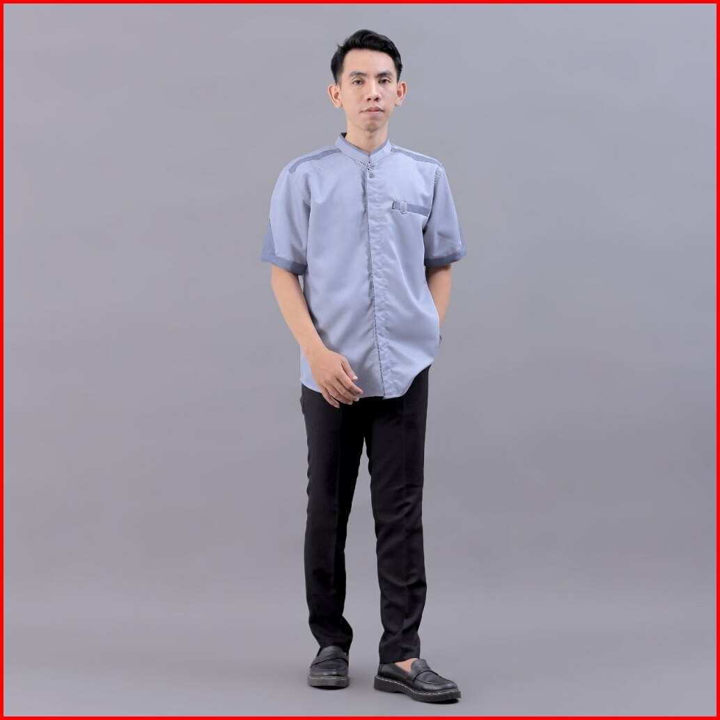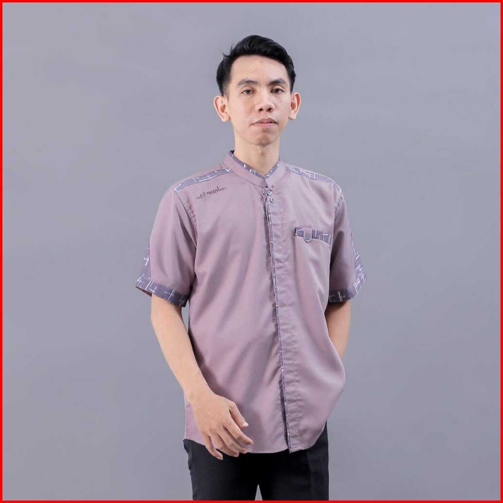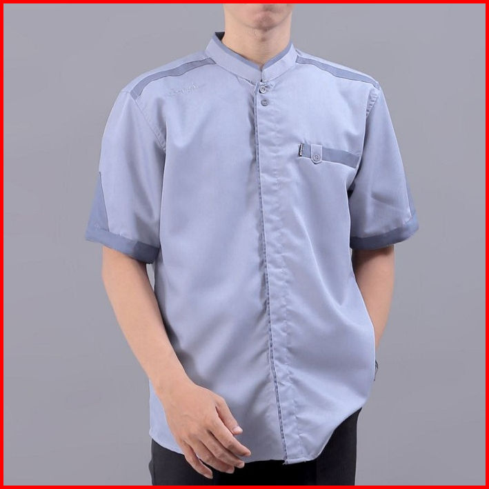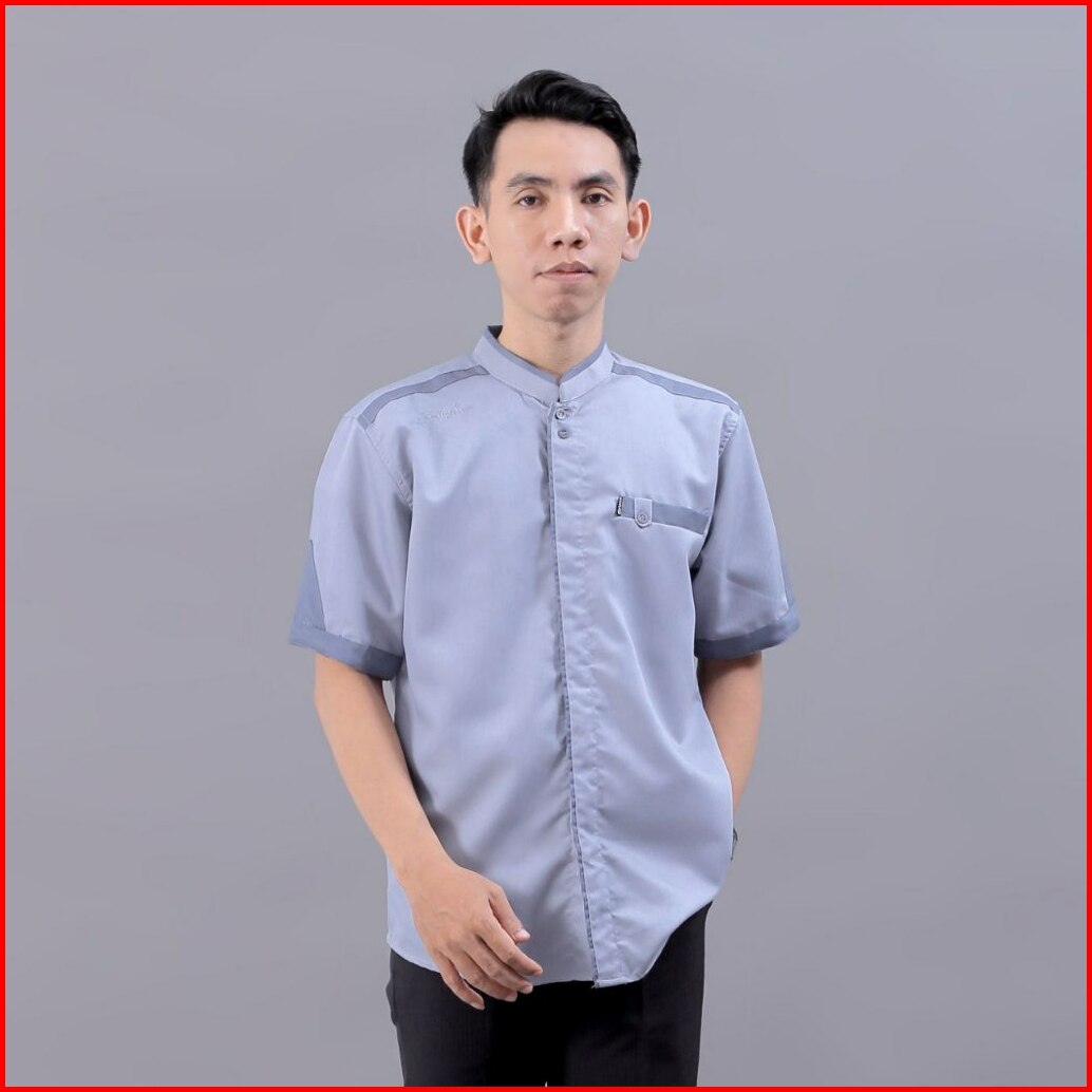 Baju Koko Pria Elrumi Lengan Pendek Motif Yisunsin Warna Abu