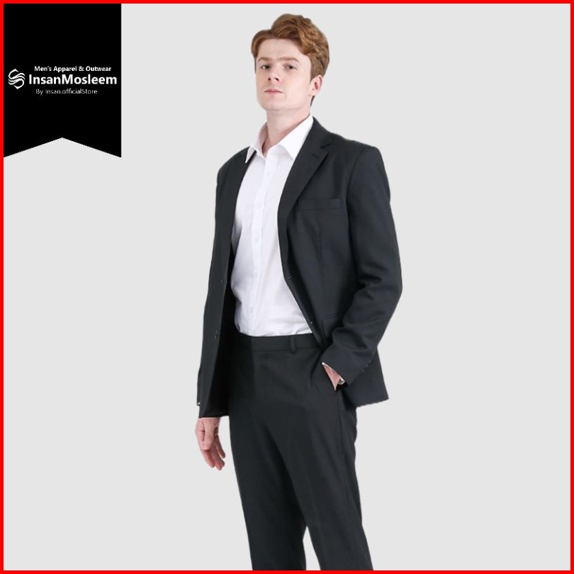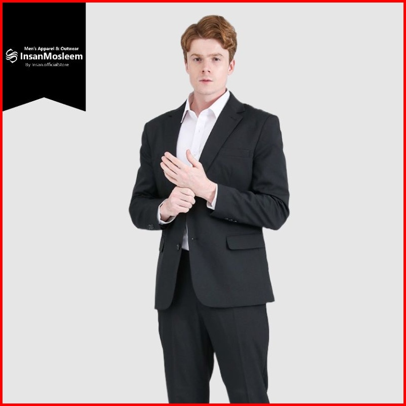 Insanmosleem - Setelan Jas Formal Pria Hitam Polos Hight Twiss