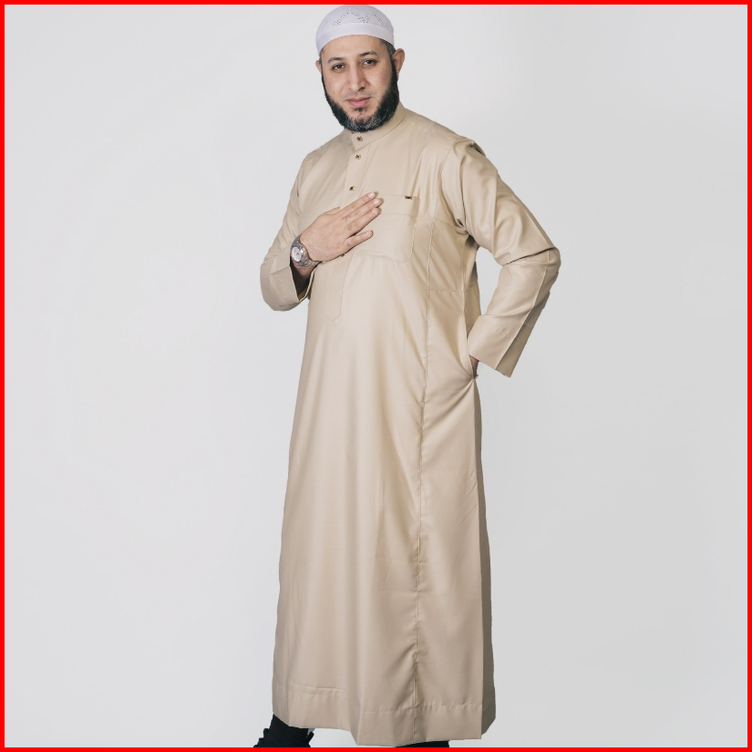 Al Haramain Jubah Gamis Pria Dewasa Slimfit Premium Series 809 Cream Biru Muda