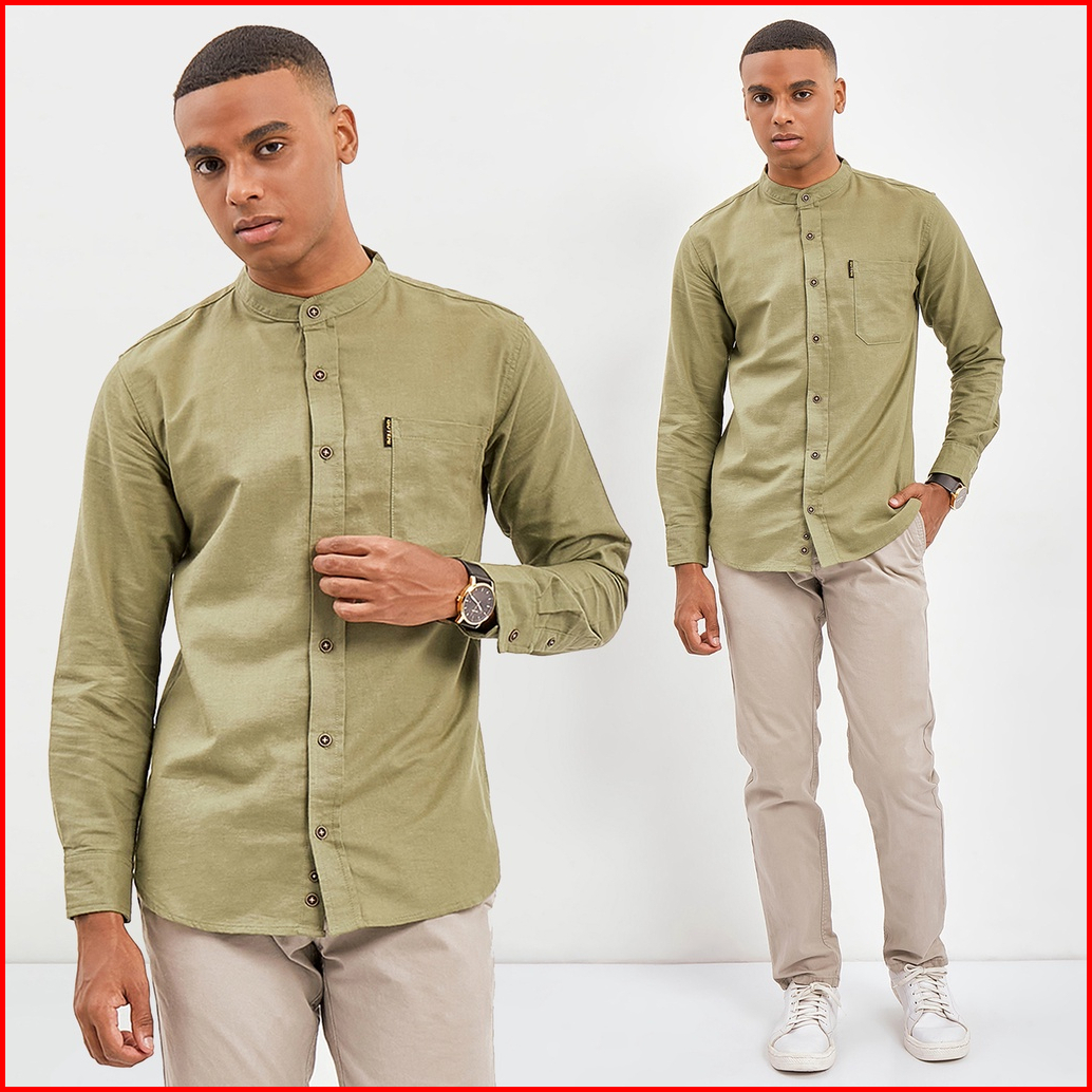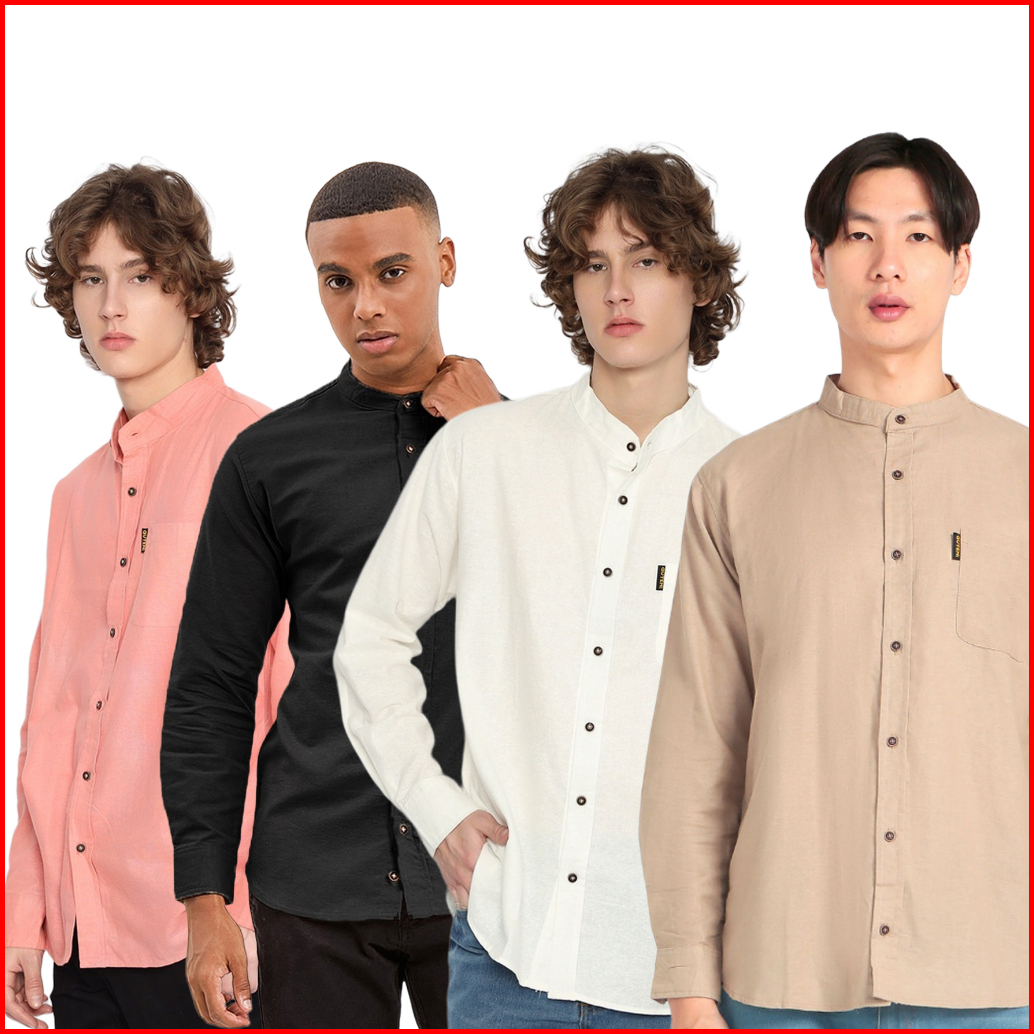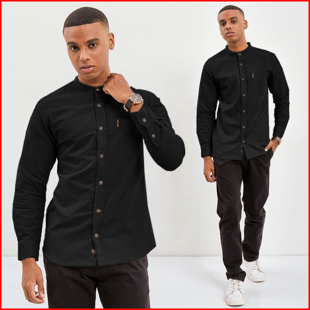 Guten Inc - Best Seller Kemeja Lengan Panjang Basic Casual Kerah Shanghai Daffa Shirt. Kemeja Polos Bahan Katun Premium