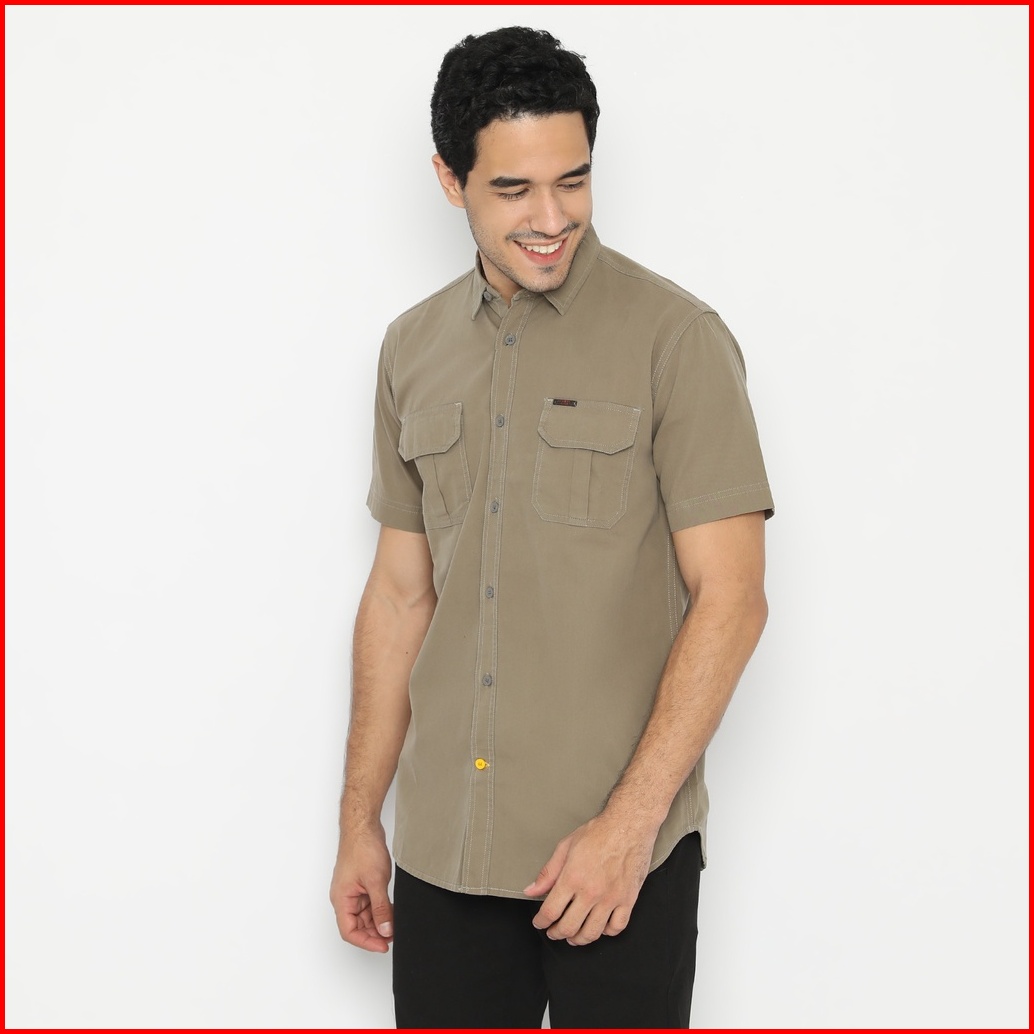 Fr James Kemeja Pria Casual Surface Double Vest Lengan Pendek