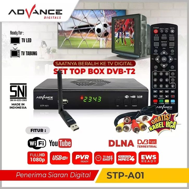 Set Top Box TV Digital Receiver Penerima Siaran Full HD/STB WiFi Bisa Youtube DVB-T2 - STB Advance STP-A01