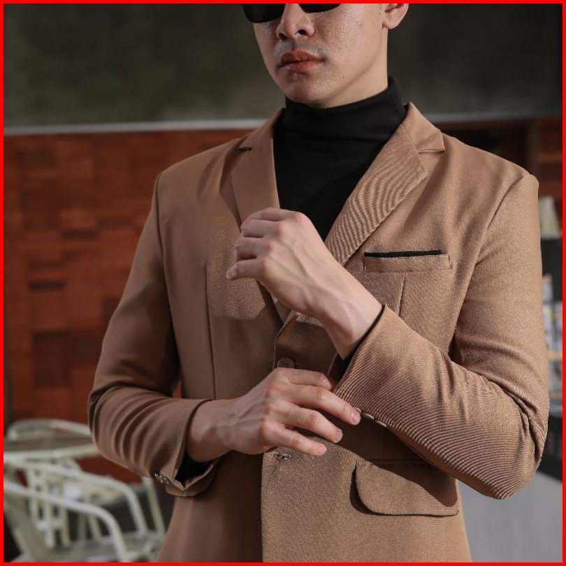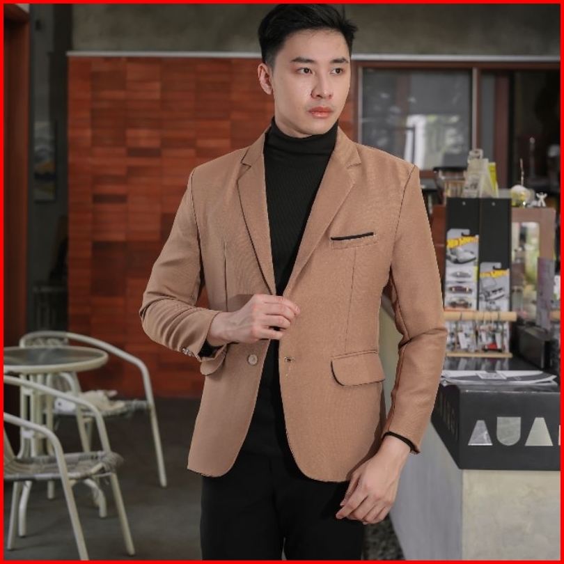 Dvandra.id Jas Blazer Mocca Slimfit Blazer Pria Coklat Muda Formal Casual