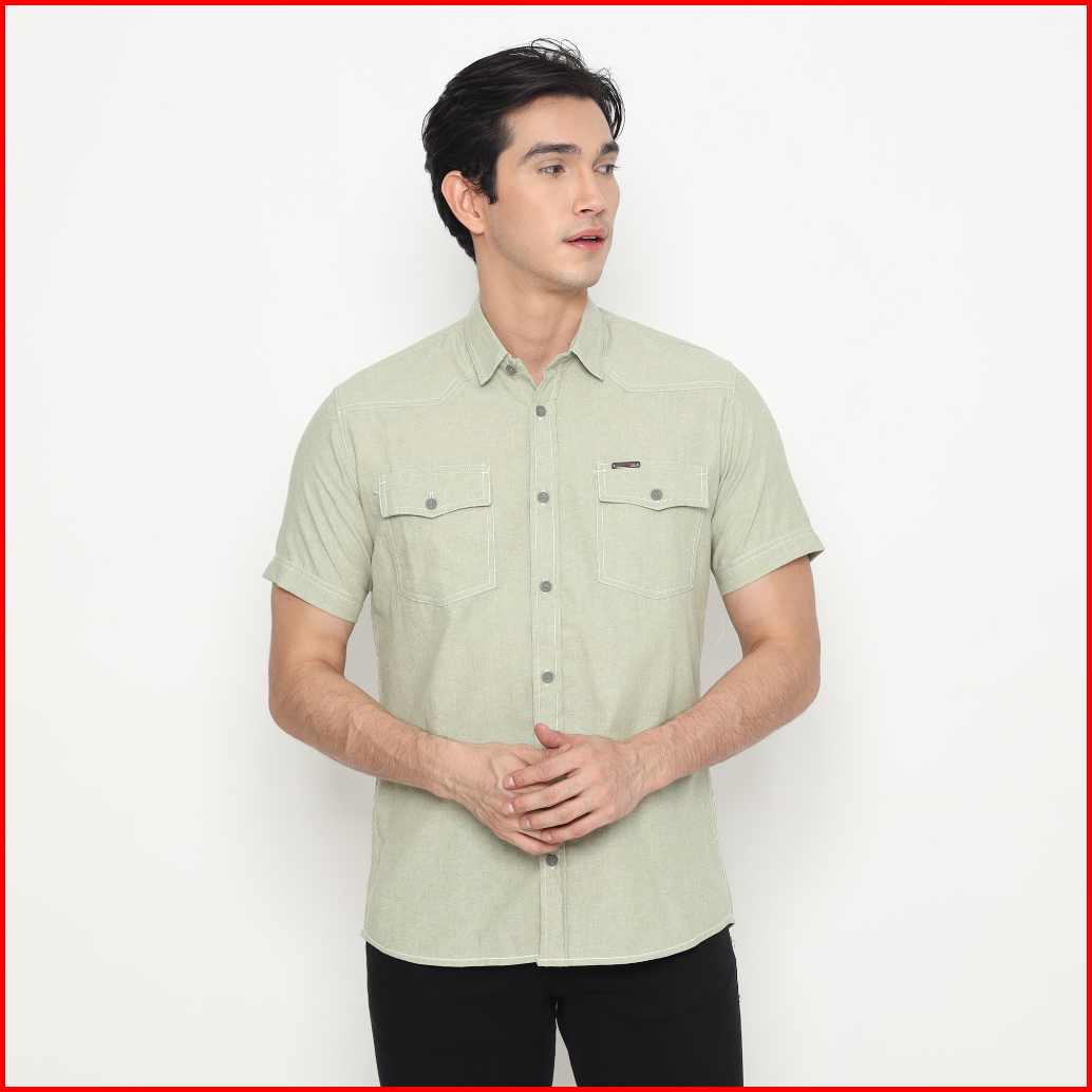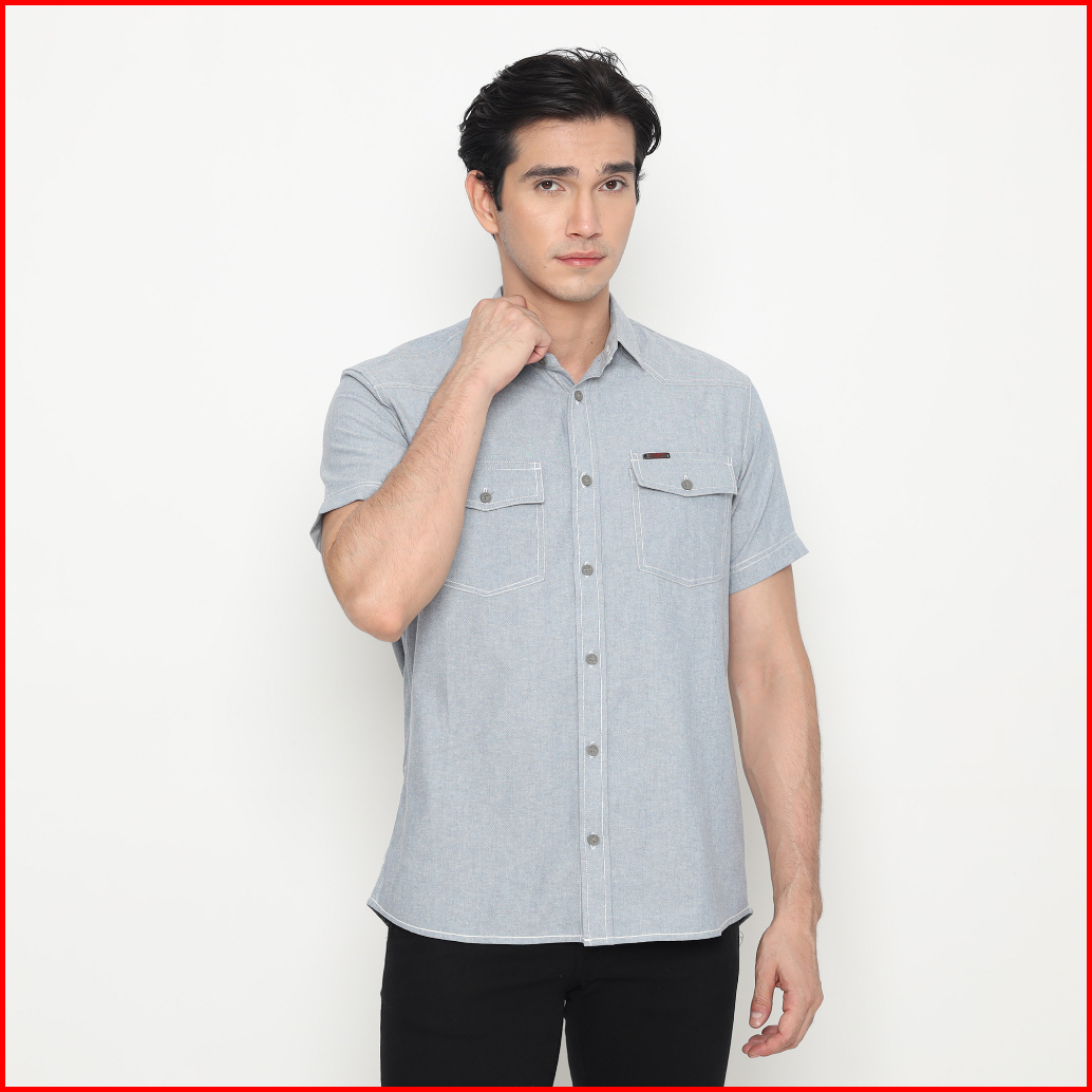 Fr James Kemeja Basic Oxford Double Pocket Lengan Pendek Pria