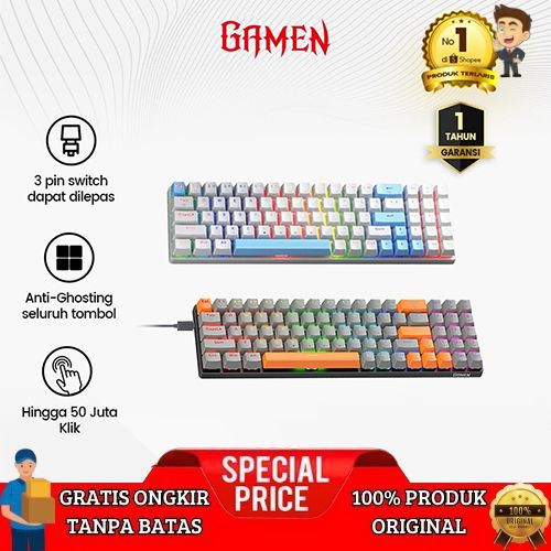 [Mall] [No.1 Terlaris] GAMEN Titan Elite Keyboard Gaming Mechanical RGB 3 Pin Hot-Swappable 78 Keys Blue/Red Switc