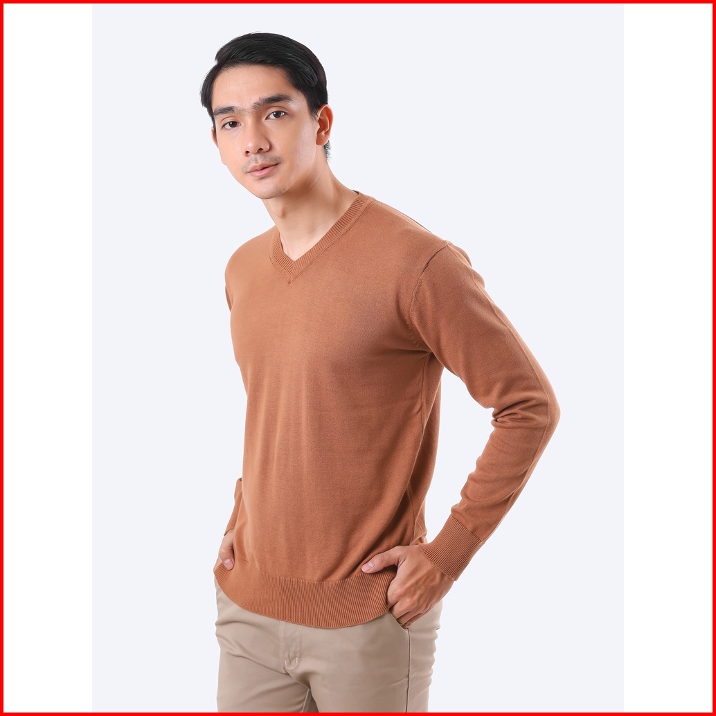 Gomuda Sweater Rajut Pria V-neck - Brown Sugar