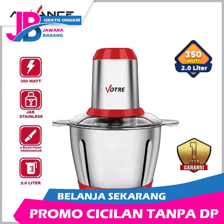 【Garansi 1 Tahun】Advance Food Chopper Blender Penggiling Daging 2L Baja Tahan Karat Listrik Meat Grinder Chopper Daging