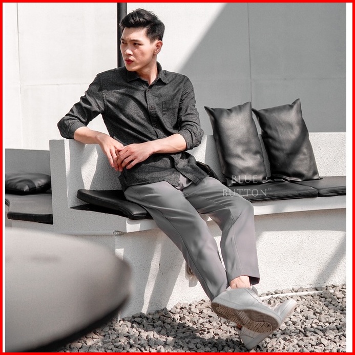 Bluebutton Celana Bahan Pria Slim Fit Ankle Pants Air - Light Grey
