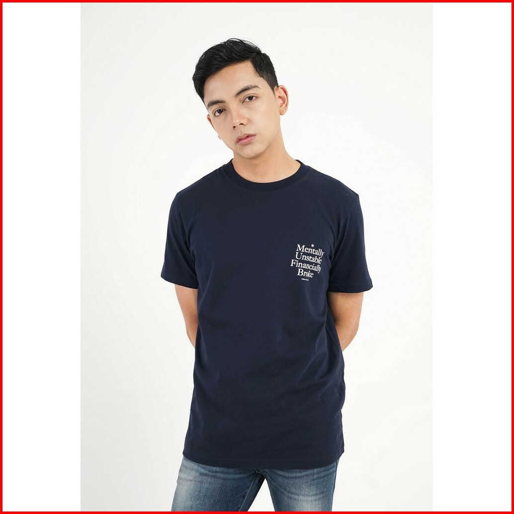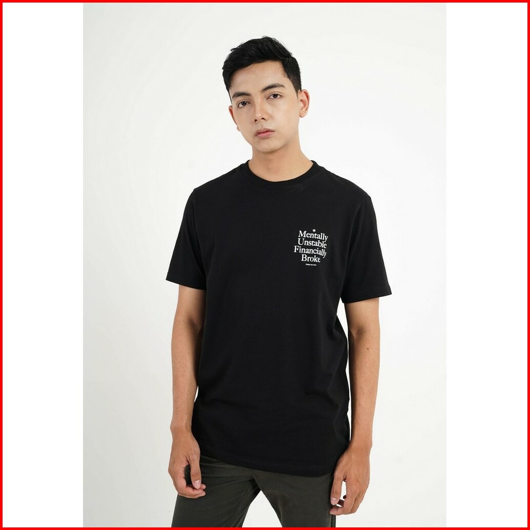 3second Kaos Pria Lengan Pendek Regular Fit Katun Mentally Unstable Ol-c671124