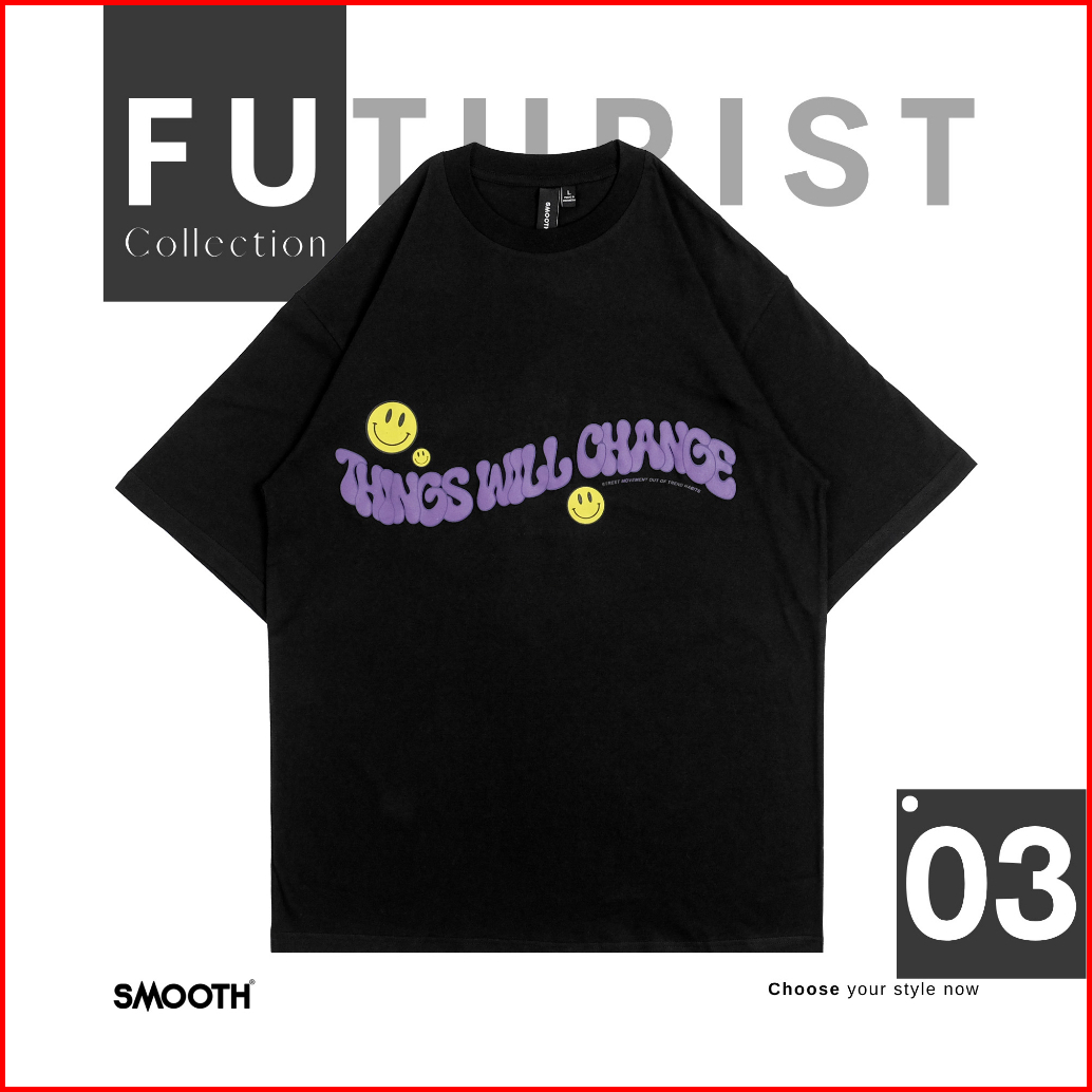 Smooth Basic Futurist Series Oversized Tshirt - Black Smile Moritz