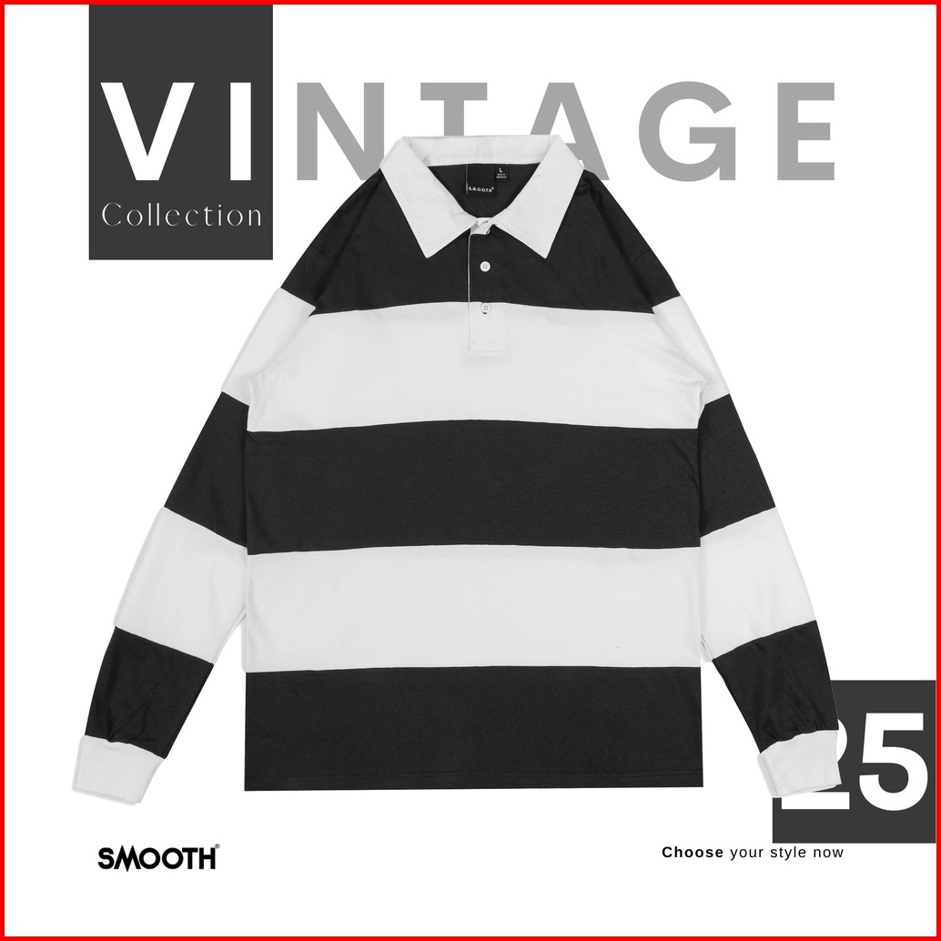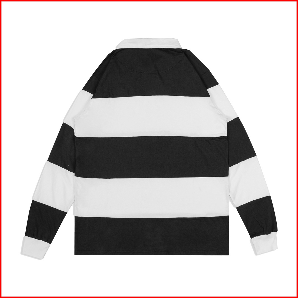 Smooth Basic Vintage Rugby Polo Shirt - Black White Black