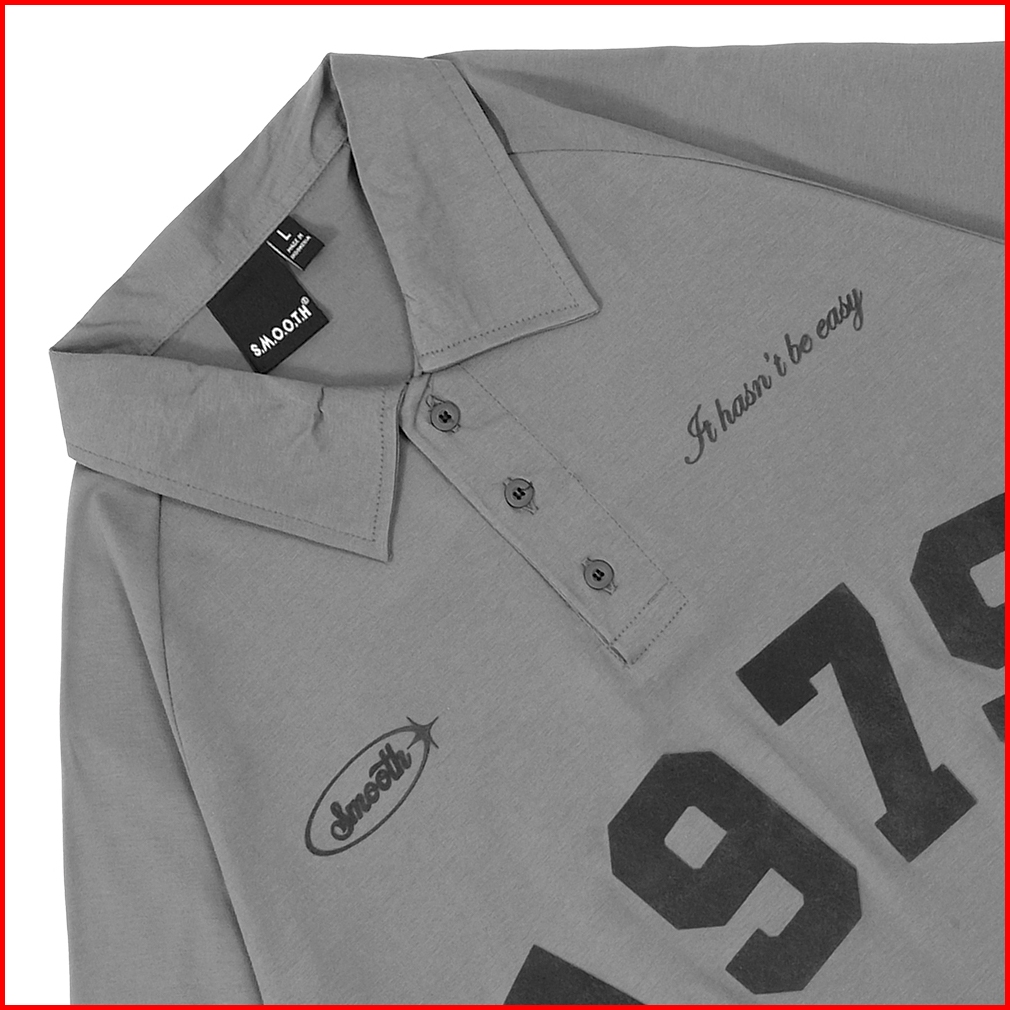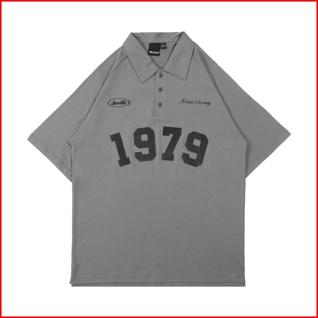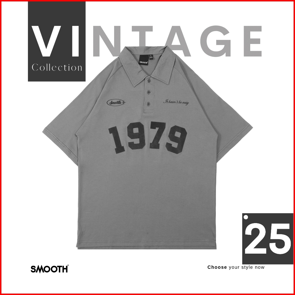 Smooth Basic Vintage Polo Oversized Shirt - Flocked Luzern 1979 Dark Grey