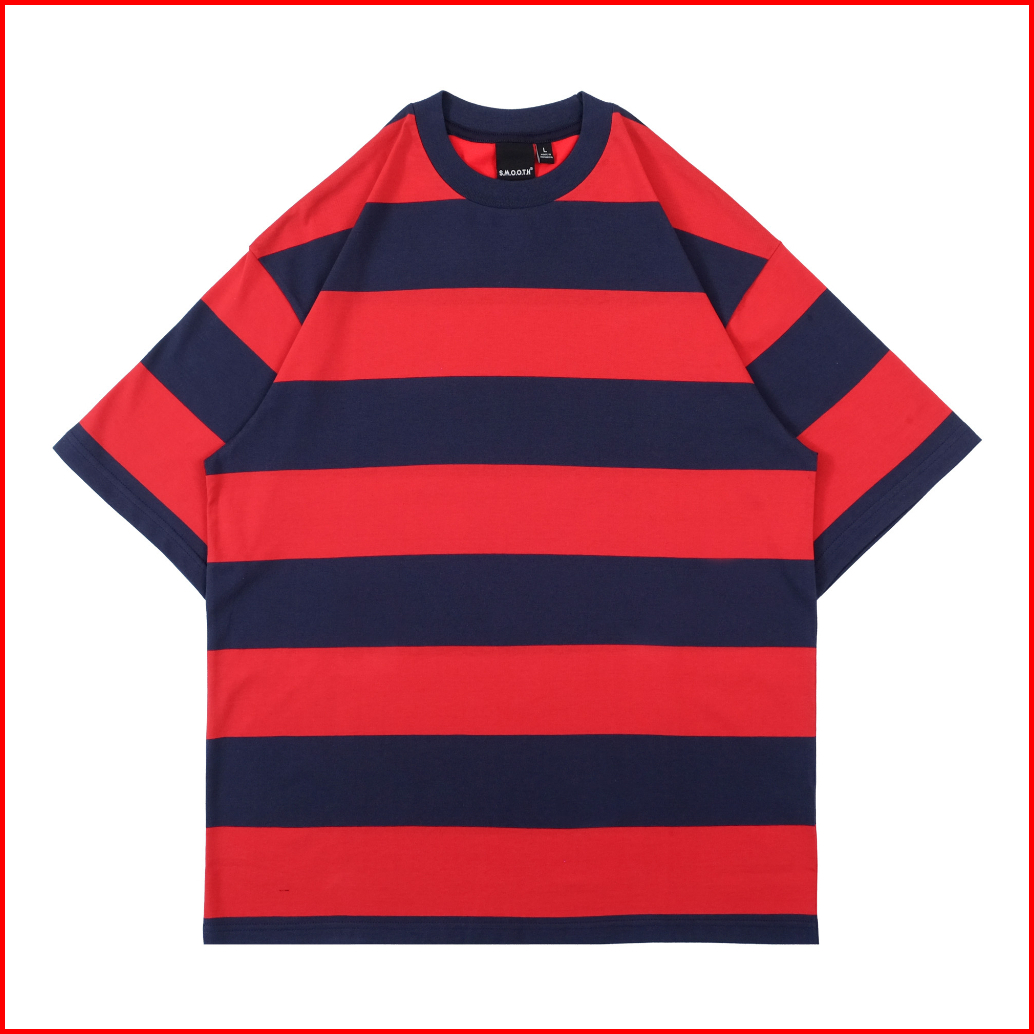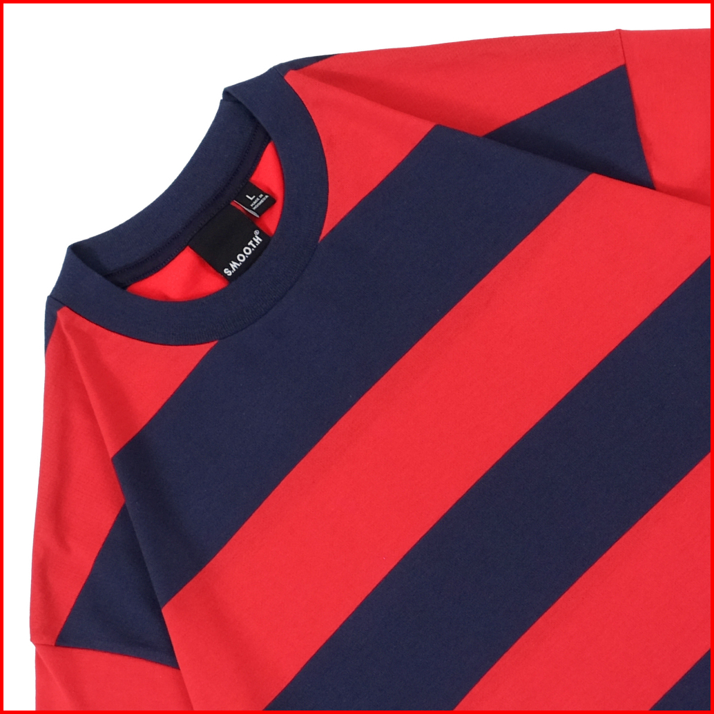 Smooth Basic Oversize Vintage Stripe Tshirt - Striped Navy Red