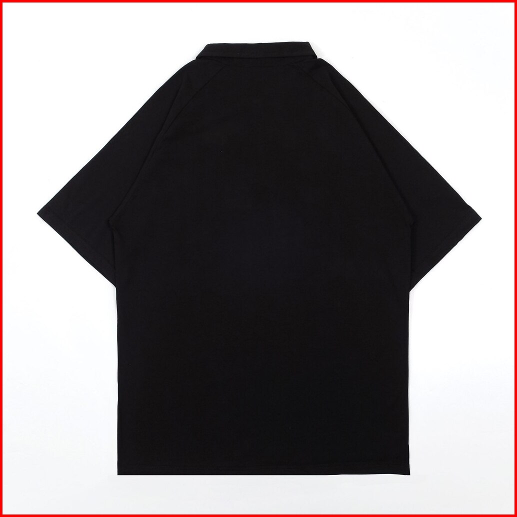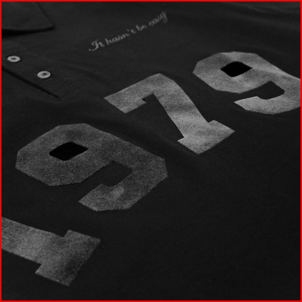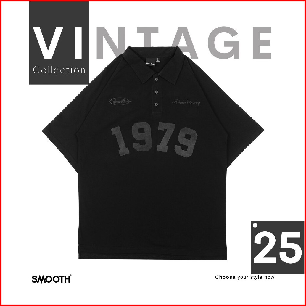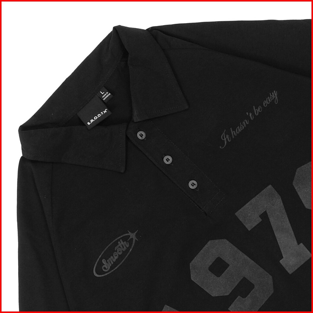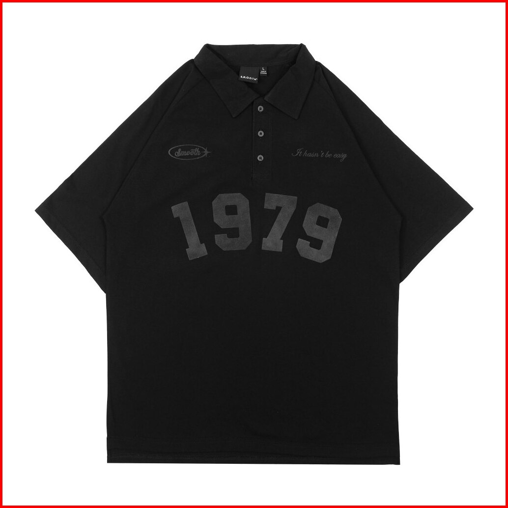 Smooth Basic Vintage Polo Oversized Shirt - Flocked Luzern 1979 Black
