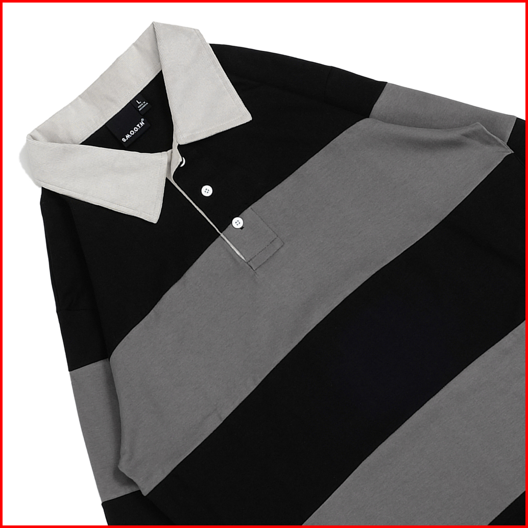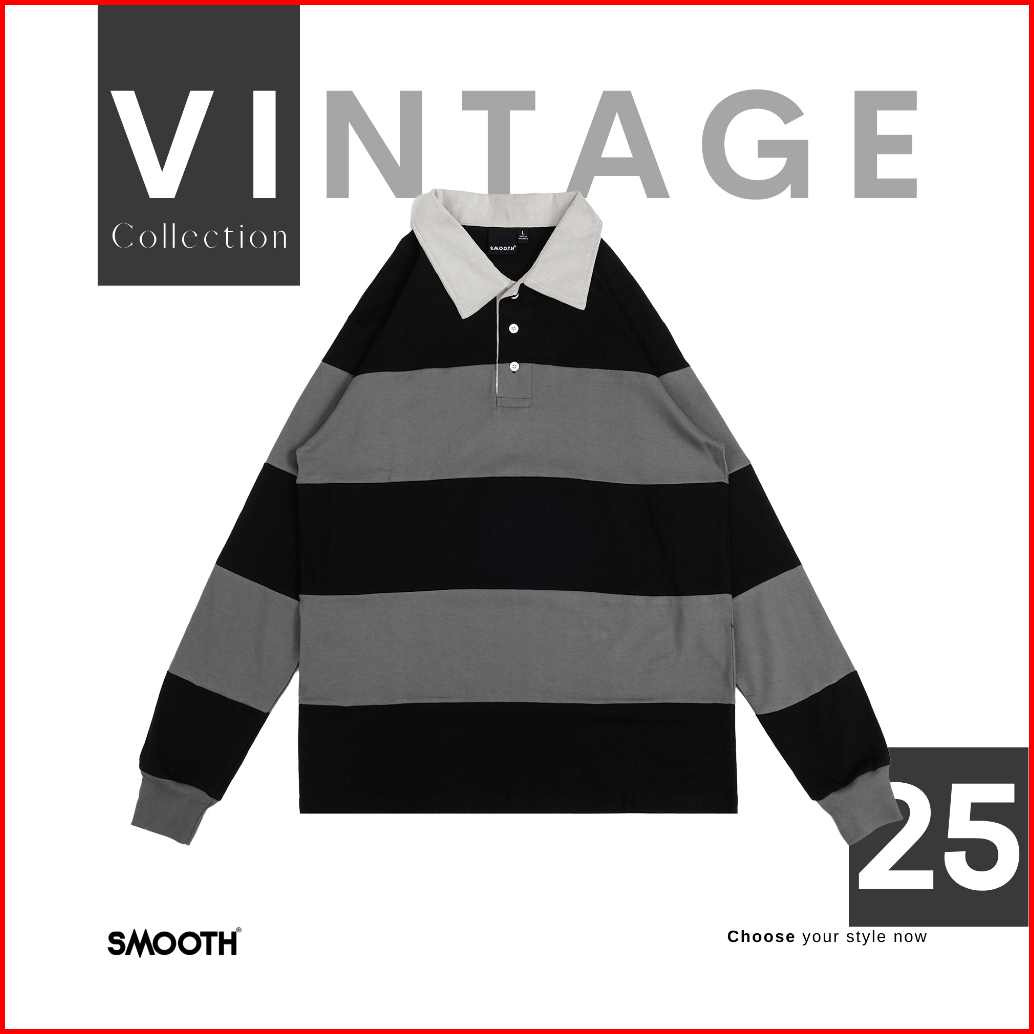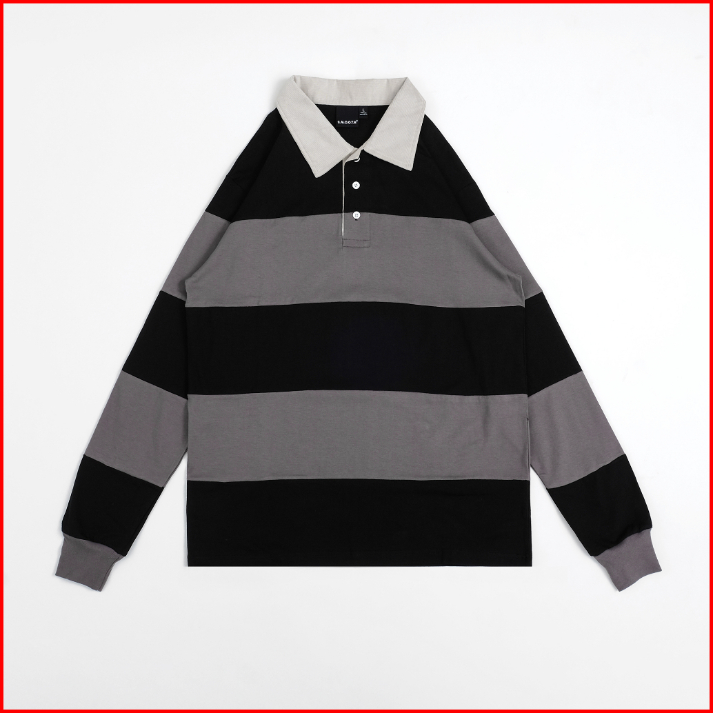 Smooth Basic Clasik Vintage Rugby Polo Shirt Corduroy - Black Grey