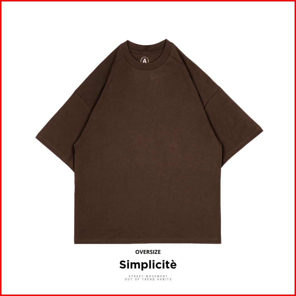 Smooth Basic Oversized Plain T-shirt Heavyweight Cotton 16s Brown Simplicite Series