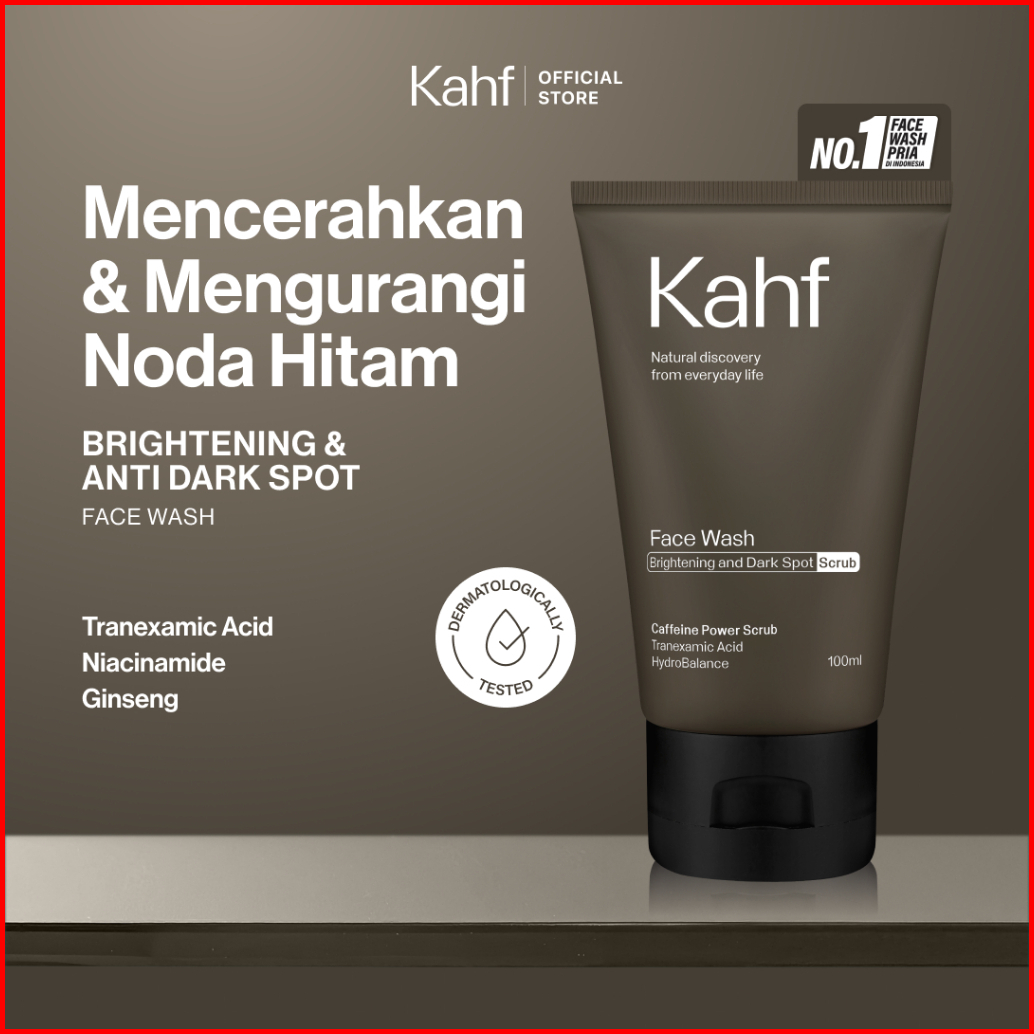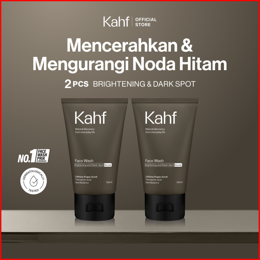 Twin Pack Kahf Face Wash Brightening And Dark Spot Scrub 100 Ml - 2 Pcs Sabun Cuci Muka Pria Anti Noda Hitam Bekas Jeraw
