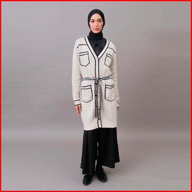 Hanna Cardigan Rajut Wanita Knit Pockets With Belt Rosaline C010823