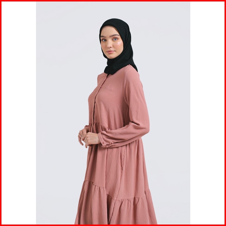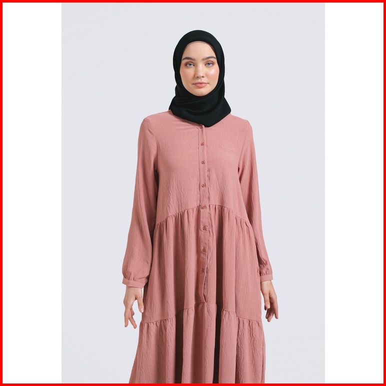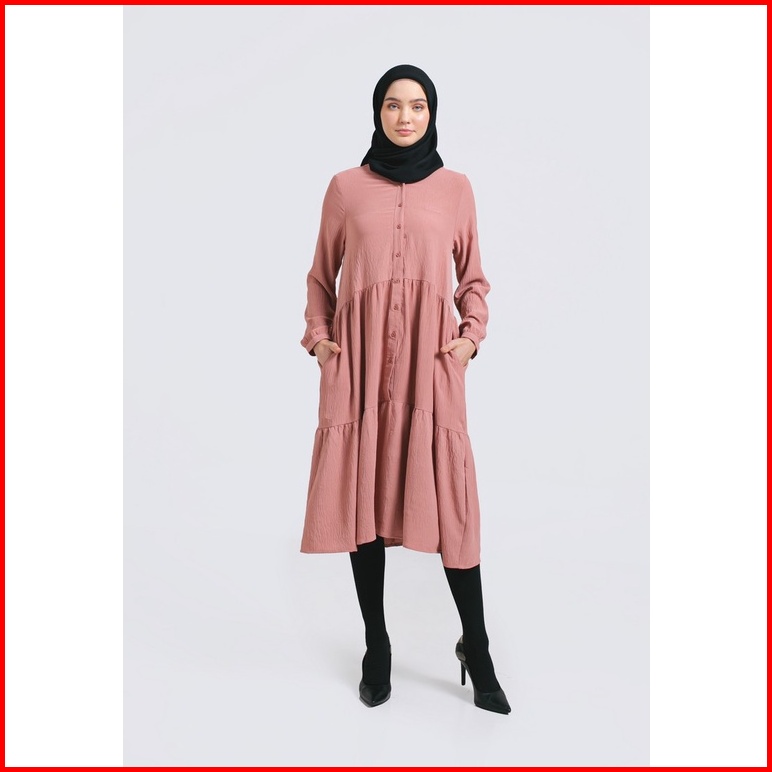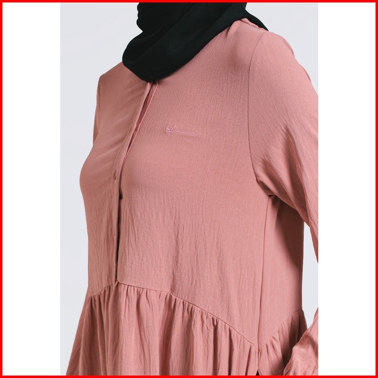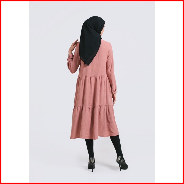 Hanna Tunik Midi Dress Greta Pakaian Atasan Hijab Polos Basic Poly Crincle Pink 021122