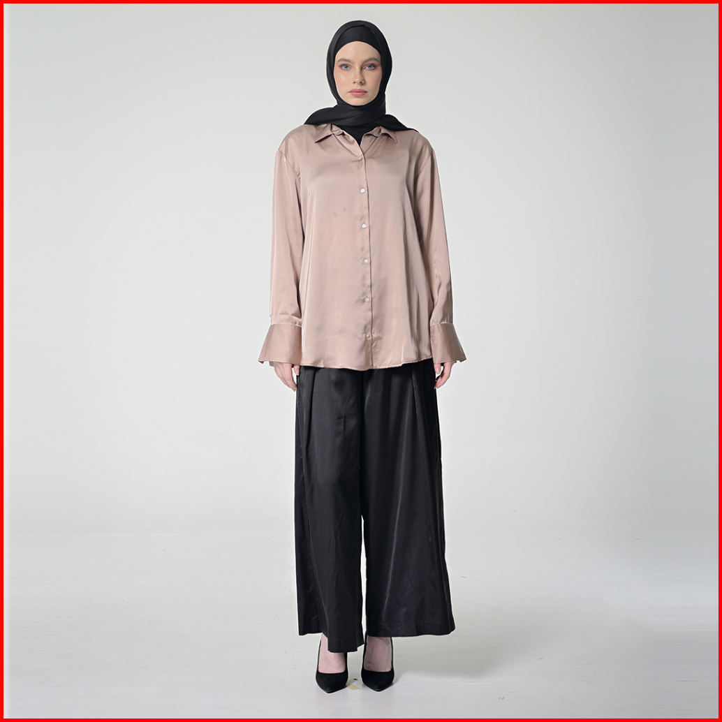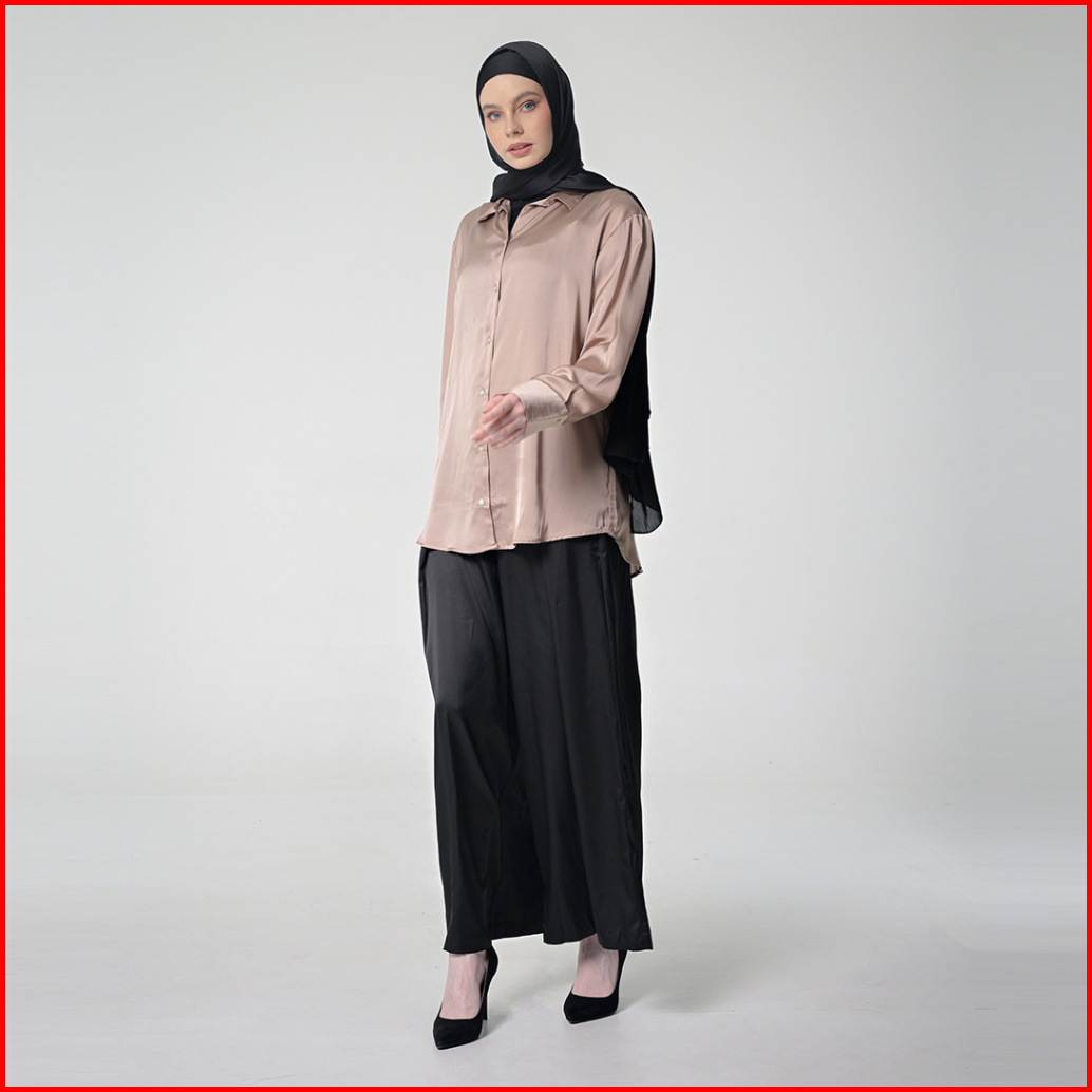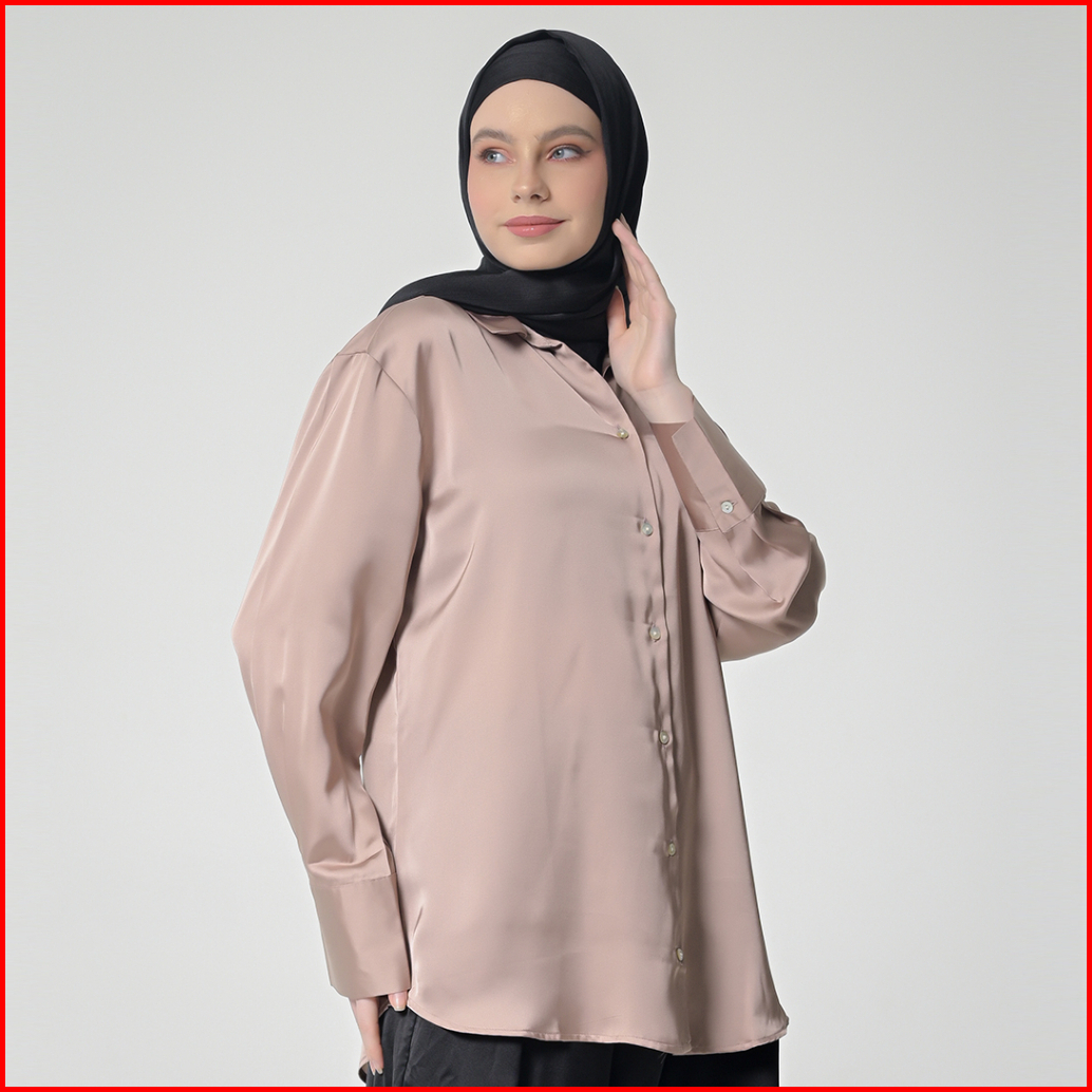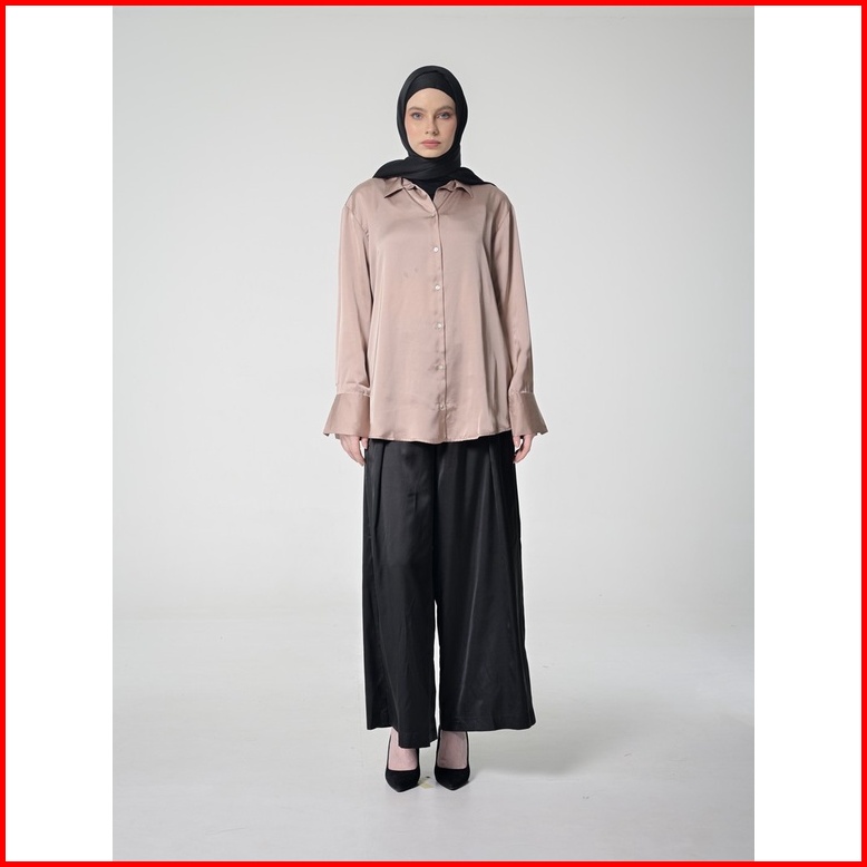 Hanna Kemeja Basic Polos Lengan Panjang Baju Atasan Wanita Shirt Long Sleeve Coklat Shandy 060323